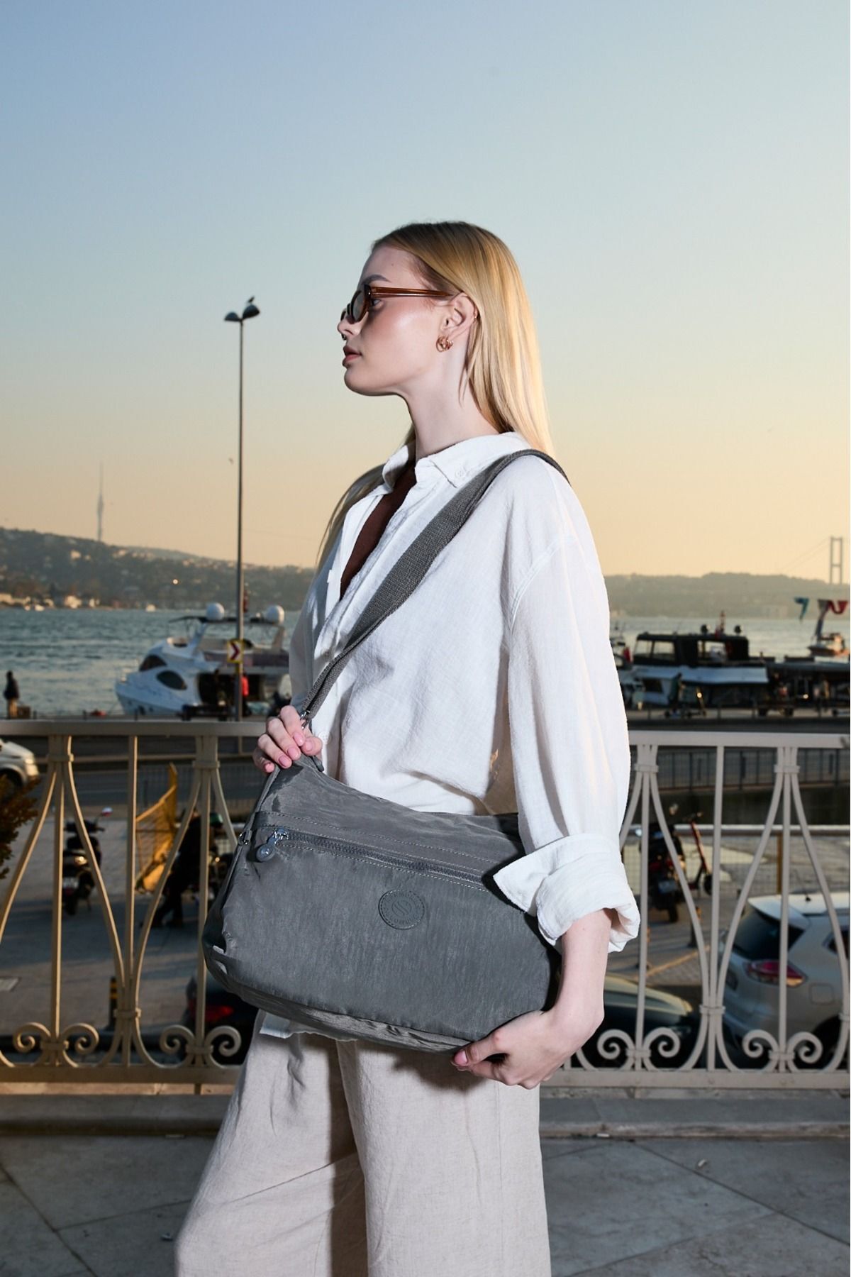 Kadın Suya Dayanıklı Kumaş 5 Gözlü Çapraz Askılı Koyu Gri Okul Seyahat Ve Omuz Çantası Kadın Suya Dayanıklı Kumaş 5 Gözlü Çapraz Askılı Koyu Gri Okul Seyahat Ve Omuz Çantası S-3051 تک سایز