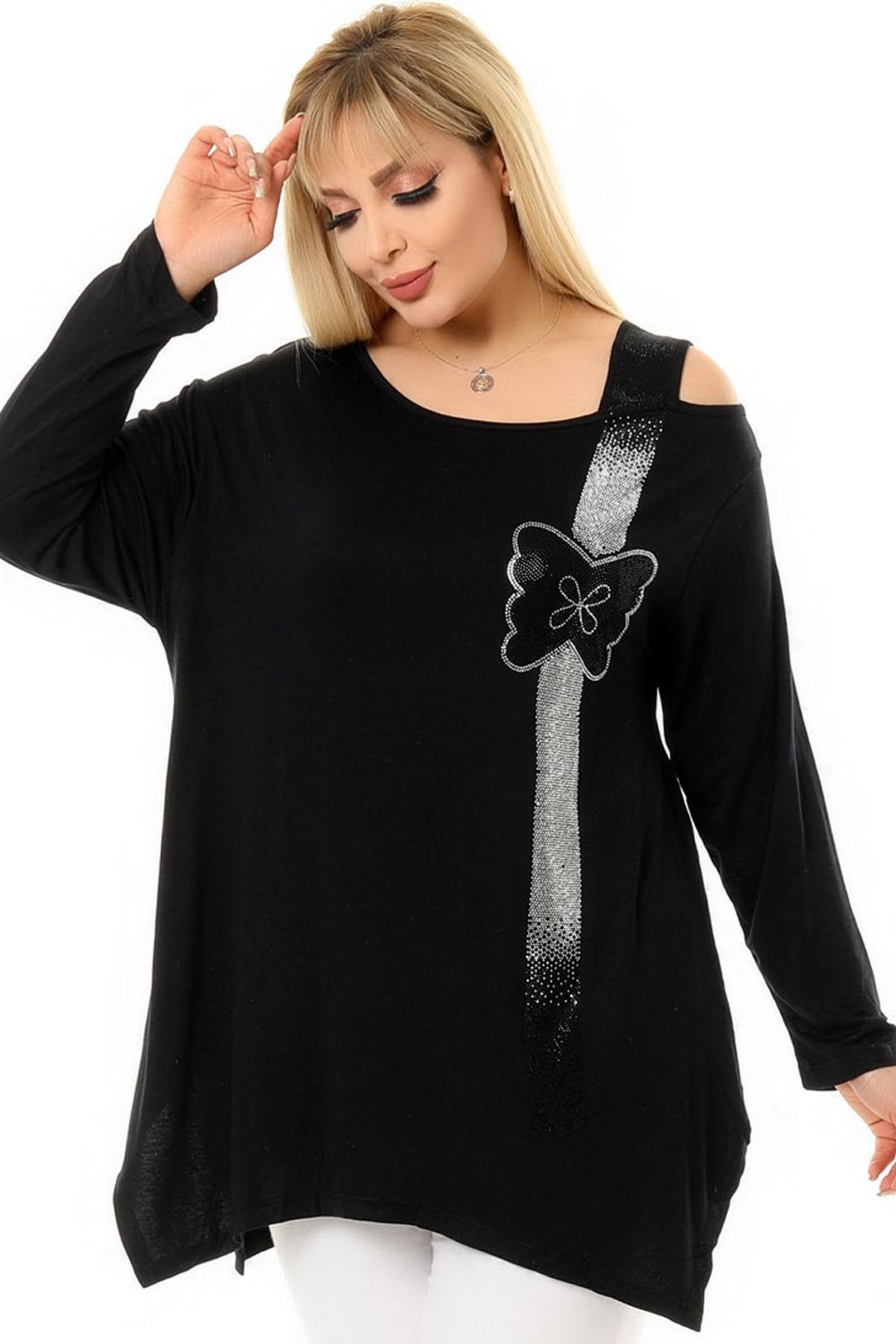 Büyük Beden Uzun Tül Kol Önü Taş İşlemeli Bisiklet Yaka Bluz 321831-U Büyük Beden Uzun Tül Kol Önü Taş İşlemeli Bisiklet Yaka Bluz 321831-U BYK-25K-321831-U 58-60