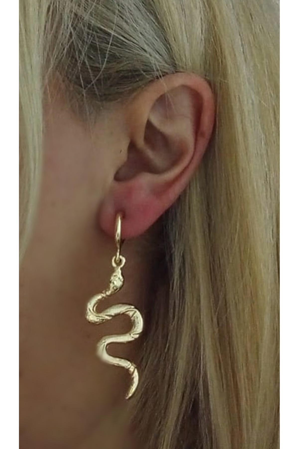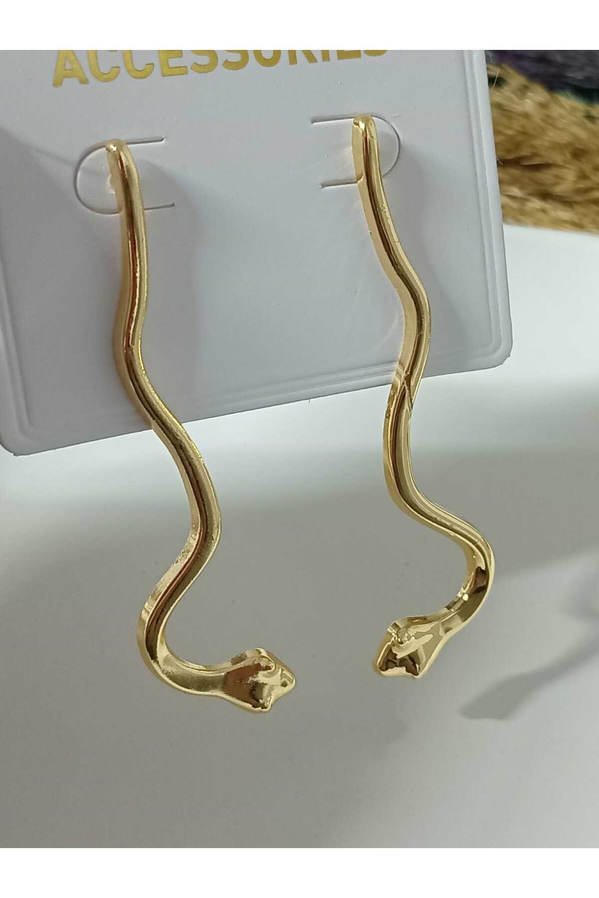 Gold Yılan Tasarım Büyük Kadın Küpe Gold Yılan Tasarım Büyük Kadın Küpe MOS.12123 M