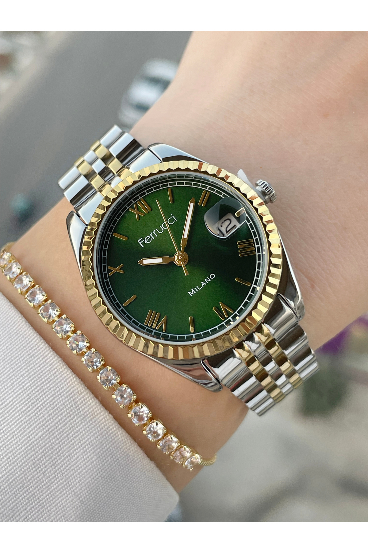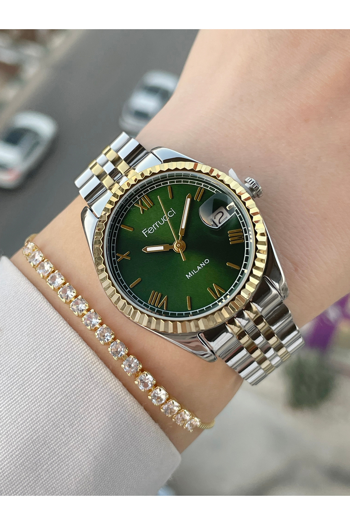 Kadranı Yeşil Kadın Kol Saati Ve Bileklik Kadranı Yeşil Kadın Kol Saati Ve Bileklik FC 2744M تک سایز