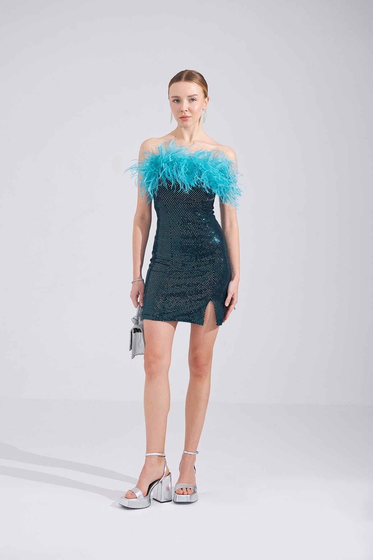 Desenli saten kolsuz kısa elbise Desenli saten kolsuz kısa elbise 965531-S43 40