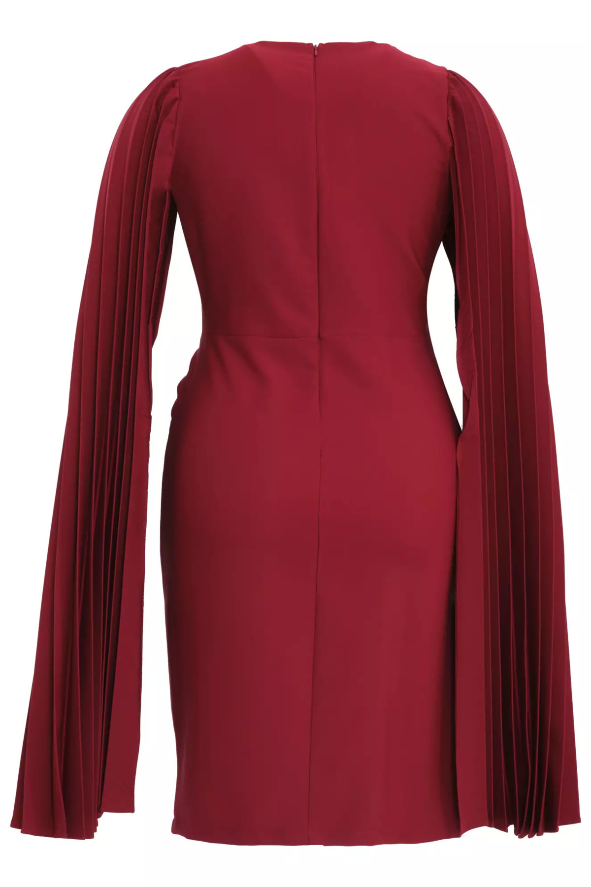 Bordo büyük beden krep uzun kol kısa elbise Bordo büyük beden krep uzun kol kısa elbise 961798-012 46
