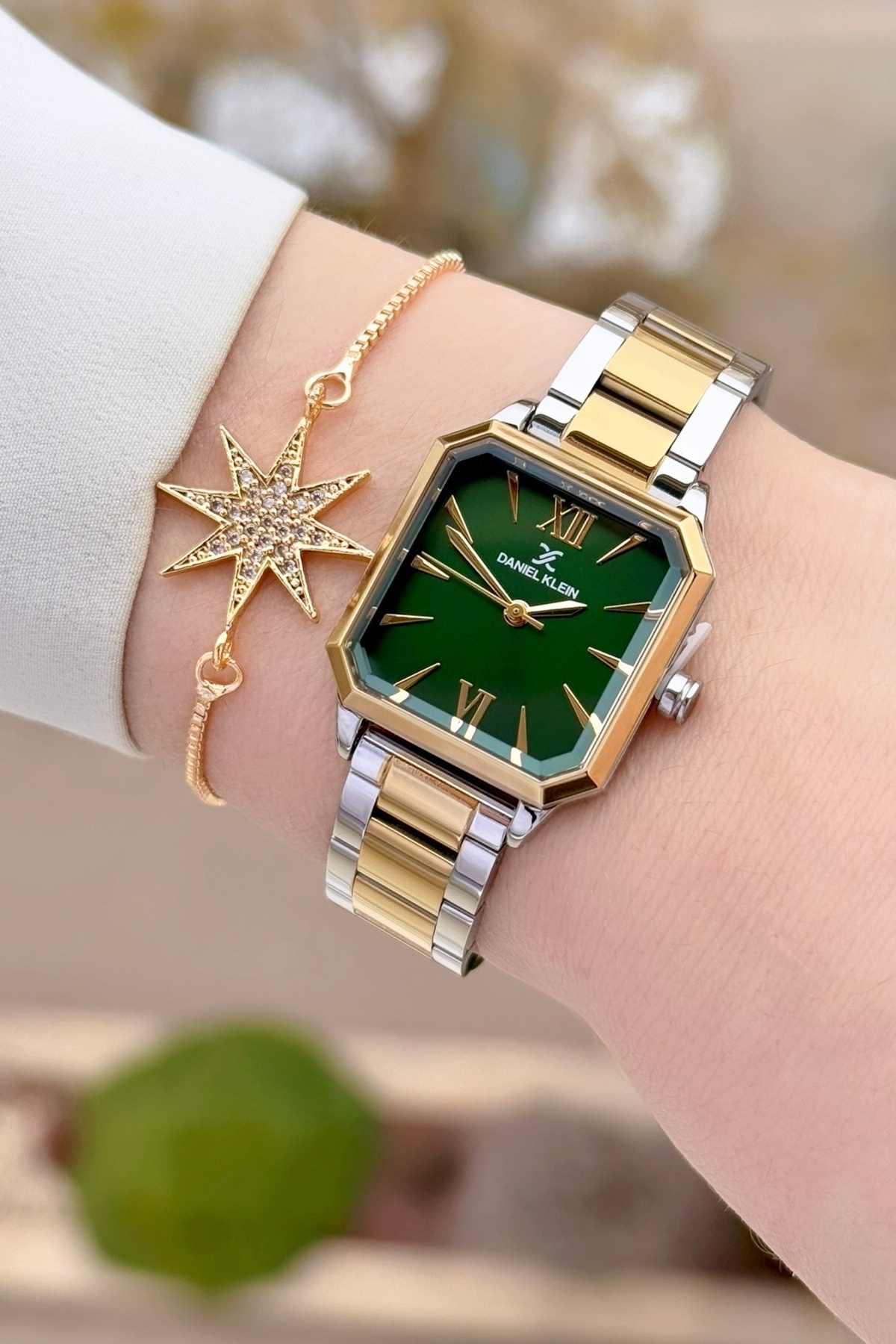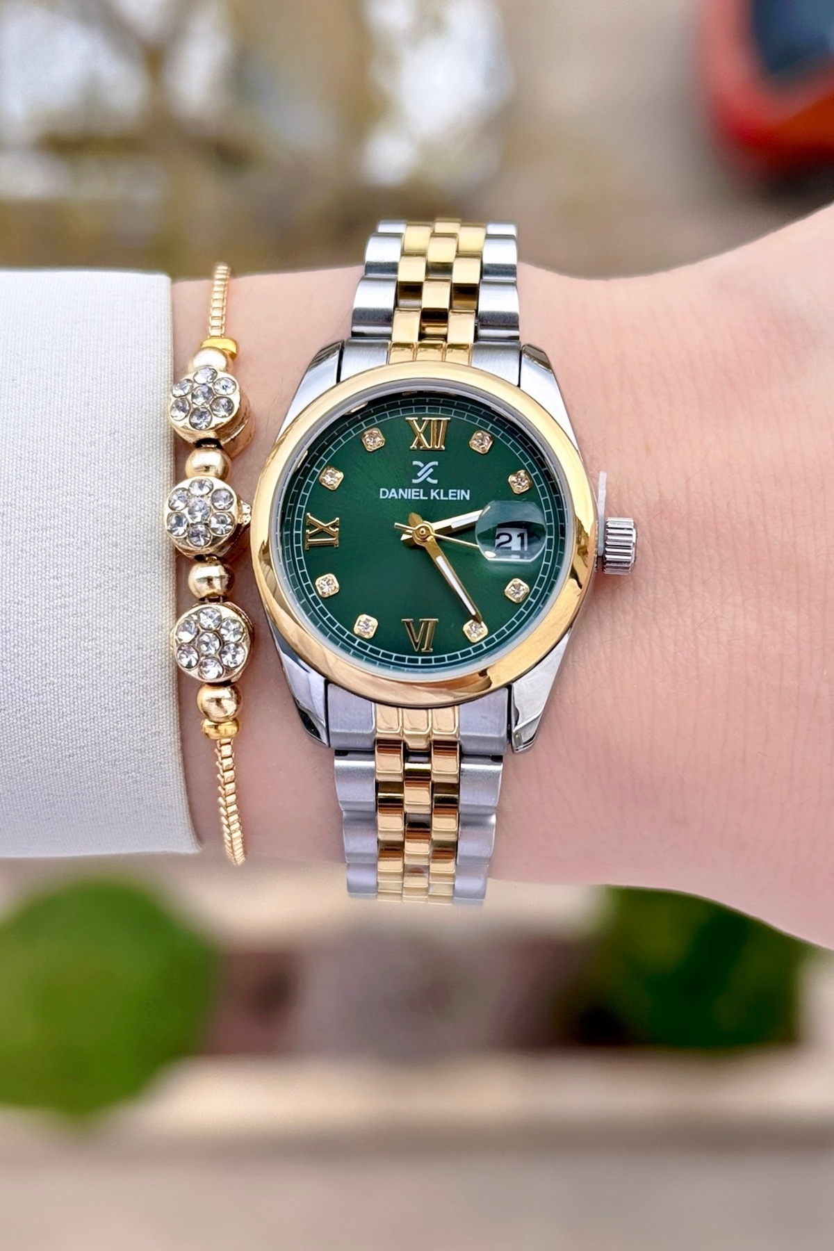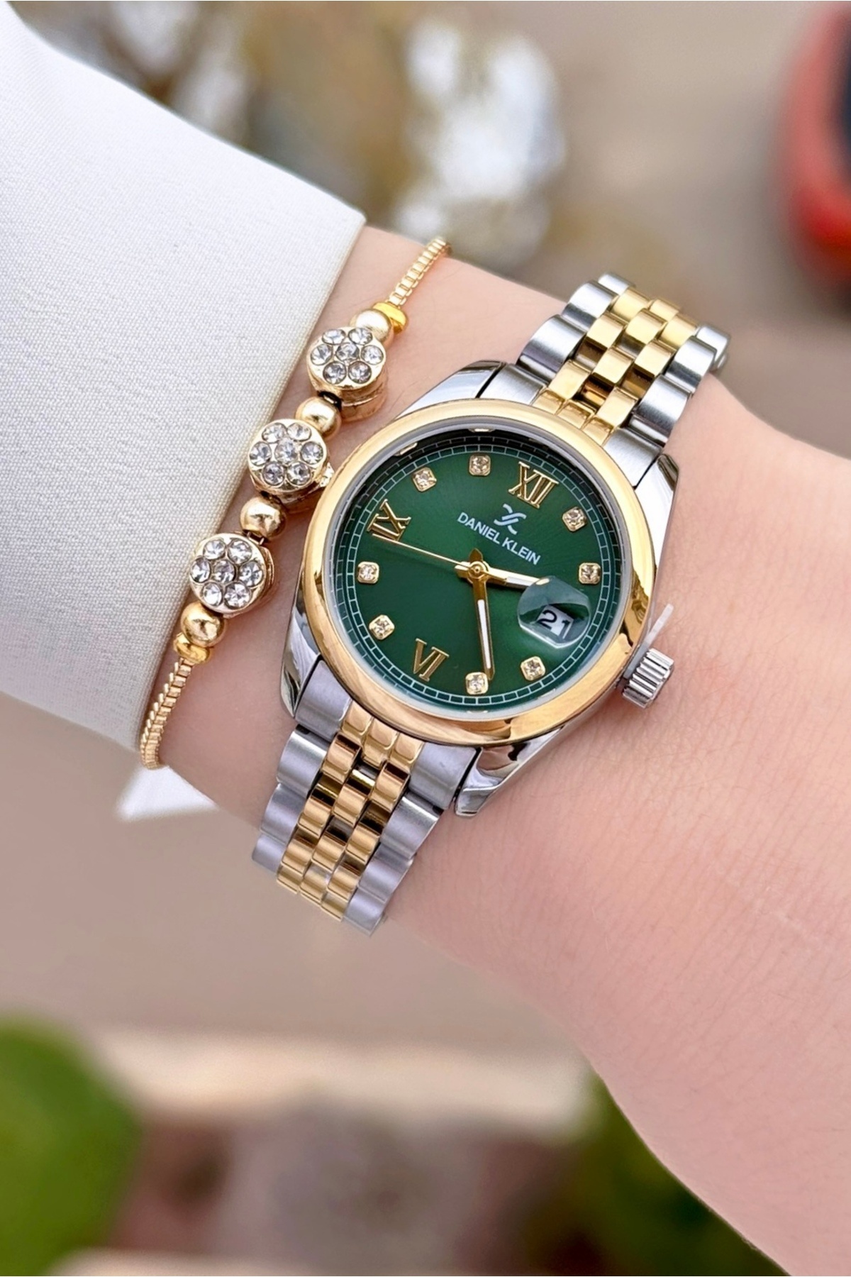 Kadranı Yeşil Kordonu Gold Gümüş Renk Kadın Kol Saati ve Bileklik Kadranı Yeşil Kordonu Gold Gümüş Renk Kadın Kol Saati ve Bileklik DKISTE3IOO19 تک سایز