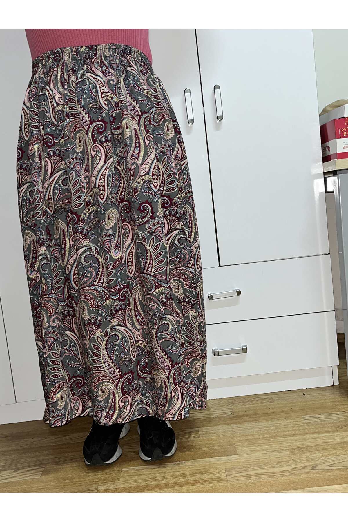 Beli Lastikli Desenli Viskon Basma Kumaş Maxi Boy Anne Etek Beli Lastikli Desenli Viskon Basma Kumaş Maxi Boy Anne Etek Hoabuyuetek Standart