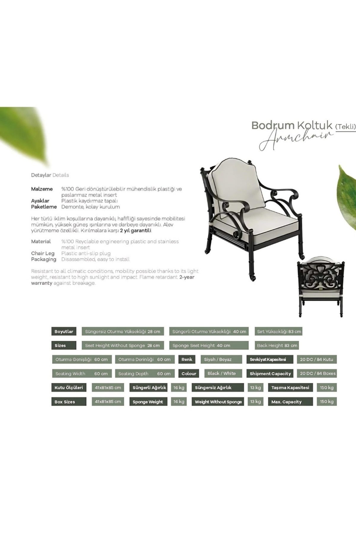 Ferforje Görünümlü Sandalye, Tüm Mekanlarda Kullanılabilen, Her Hava Koşuluna Uygun Plastik Sandalye Ferforje Görünümlü Sandalye, Tüm Mekanlarda Kullanılabilen, Her Hava Koşuluna Uygun Plastik Sandalye CRTTBDRM1020 تک سایز