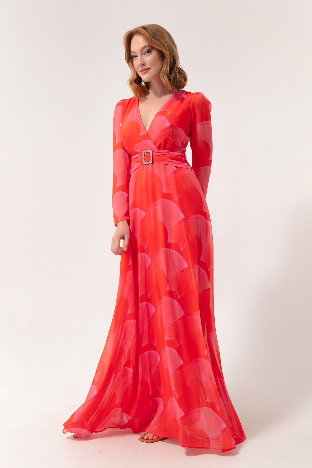 Kruvaze yaka Desenli Şifon Elbise Kruvaze yaka Desenli Şifon Elbise ince-3482 50