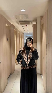 Deri Görünümlü Biker Ceket Crop Suni Leopar Kürk Yaka Fermuarlı Cep Detaylı Deri Görünümlü Biker Ceket Crop Suni Leopar Kürk Yaka Fermuarlı Cep Detaylı 5WAL20157IW 40
