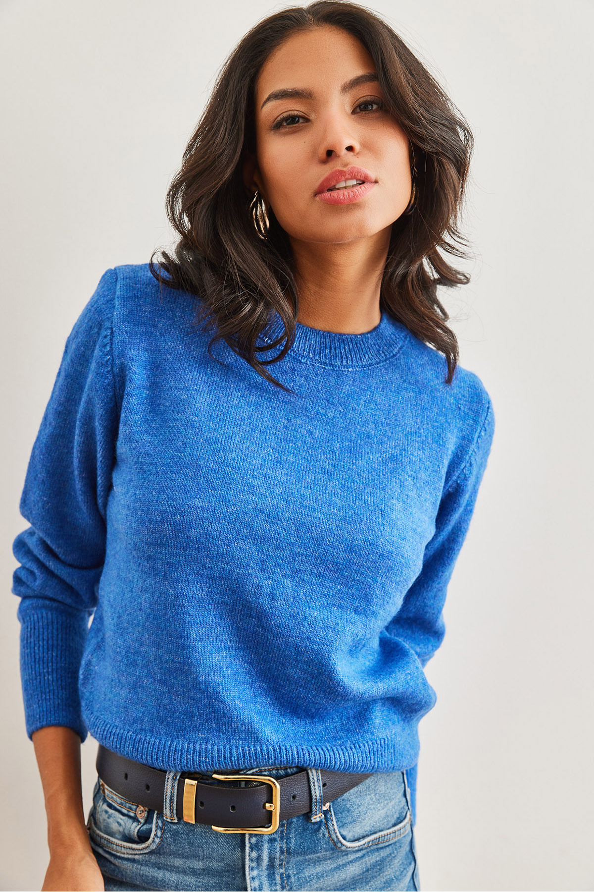 Kadın Saks Mavi Bisiklet Yaka Yumuşak Dokulu Sakal Kazak KZK-19000858 Kadın Saks Mavi Bisiklet Yaka Yumuşak Dokulu Sakal Kazak KZK-19000858 S/M