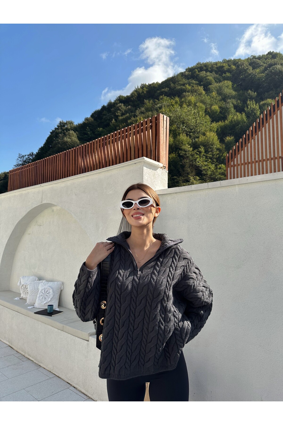 Kahve Saç Örgü Yakası Fermuarlı Triko Kahve Saç Örgü Yakası Fermuarlı Triko 108-00651 Standart