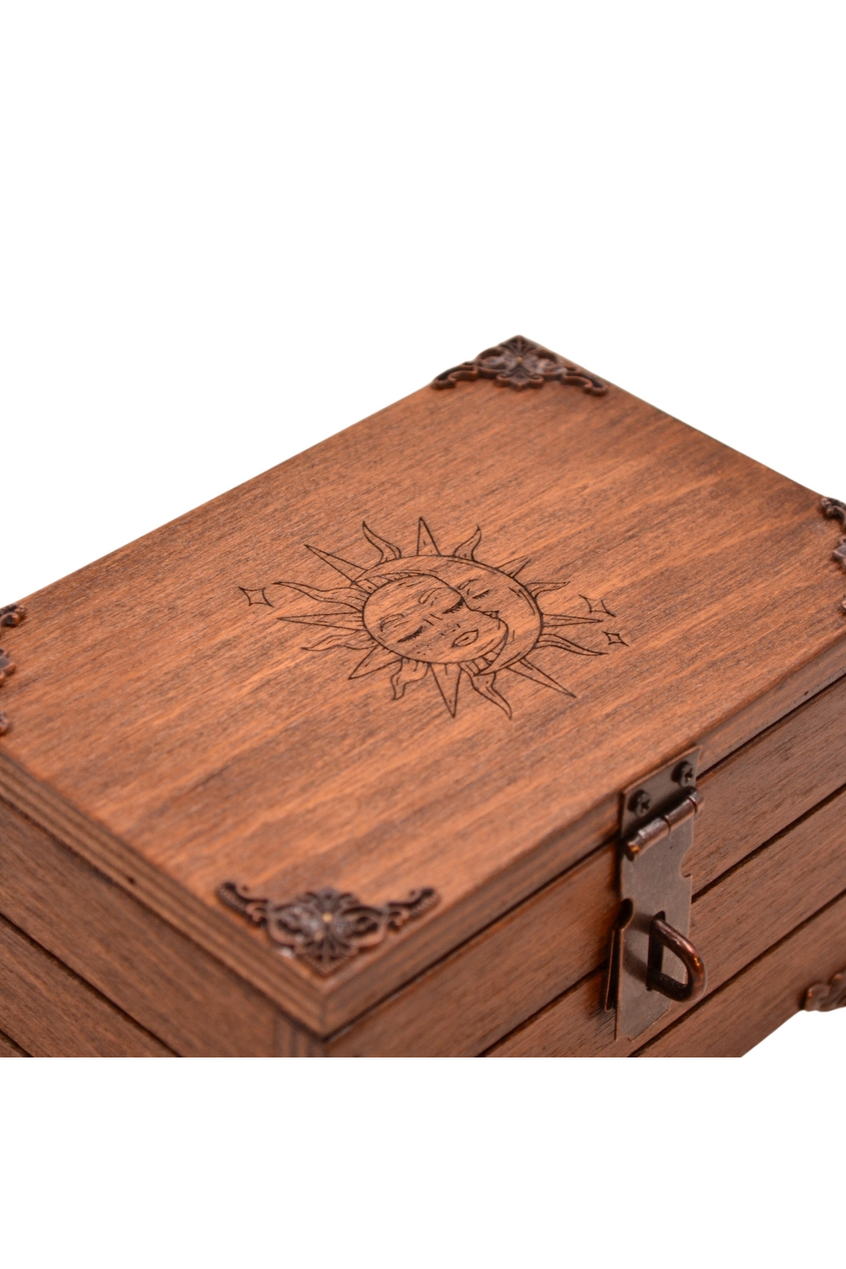 Ay ve Güneş sembollü 15cm x 10cm Genişlikte ve 10cm Yükseklikte Ahşap Asma Kilitli Kutu Ay ve Güneş sembollü 15cm x 10cm Genişlikte ve 10cm Yükseklikte Ahşap Asma Kilitli Kutu TUNSTRTKT تک سایز