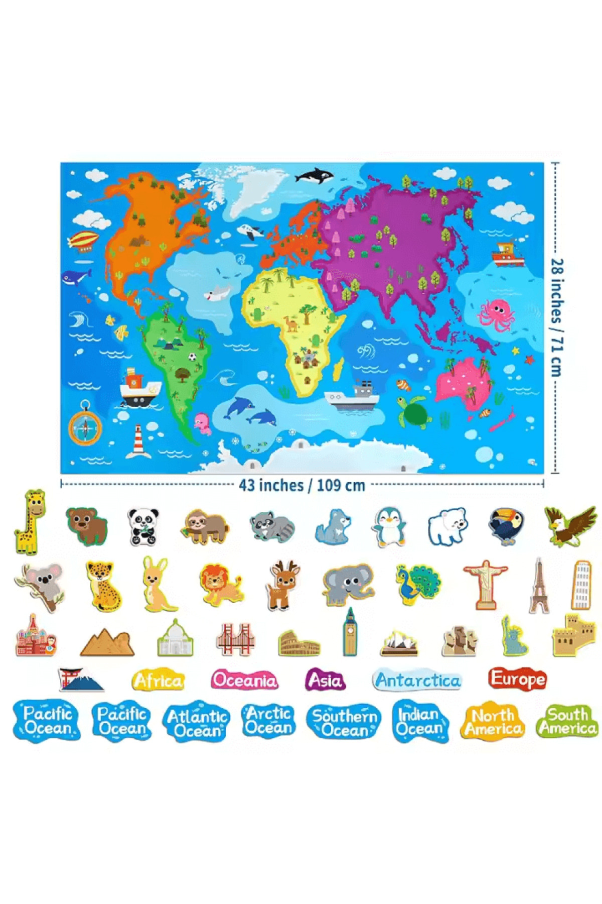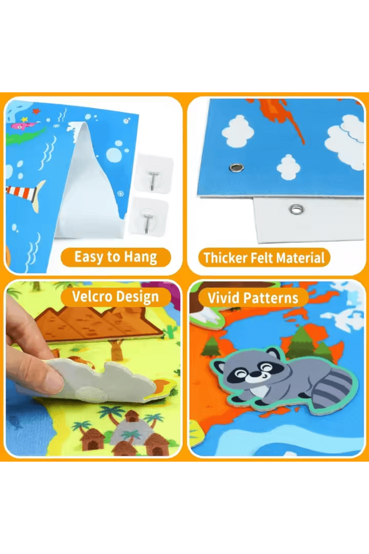 Eğitici Montessori Keçe Dünya Haritası 70*109 CM Eğitici Montessori Keçe Dünya Haritası 70*109 CM 8696690845155 تک سایز