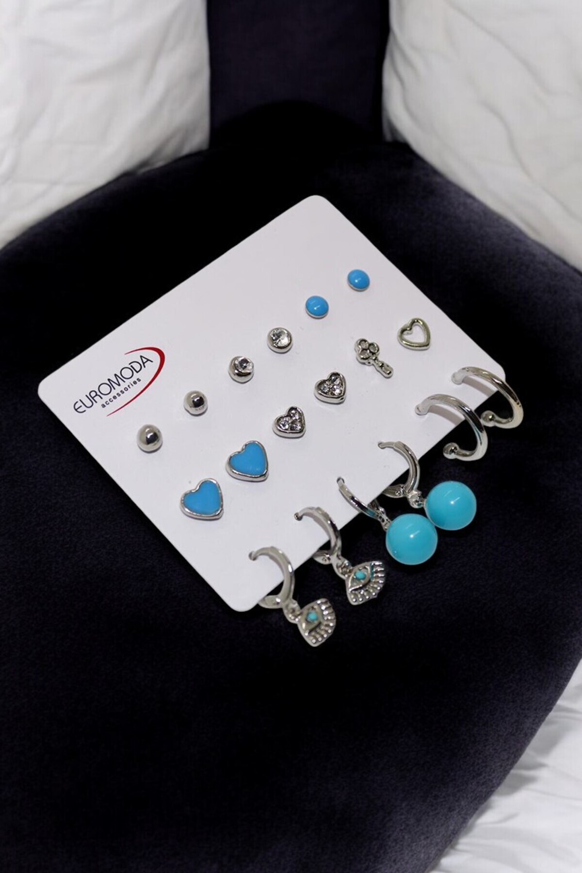 Turkuaz Kalp Göz ve İnci Küpe Tasarımlı Halka Tektaş ve Top Küpeli 9lu Küpe Seti Turkuaz Kalp Göz ve İnci Küpe Tasarımlı Halka Tektaş ve Top Küpeli 9lu Küpe Seti KP00,00,X963 تک سایز