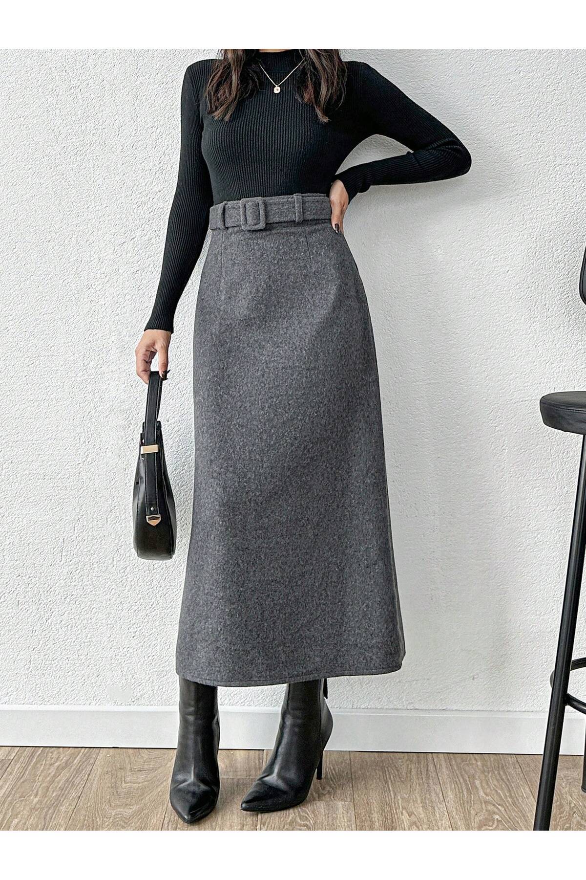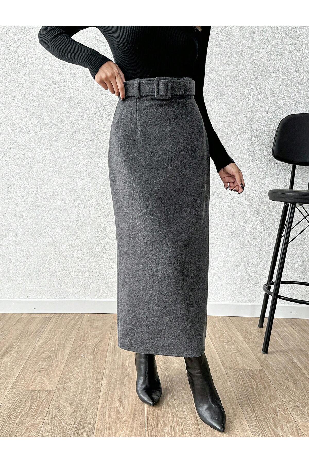 KADIN KAŞE ETEK YIRTMAÇLI KEMERLİ ETEK KADIN KAŞE ETEK YIRTMAÇLI KEMERLİ ETEK ZR5252 XL