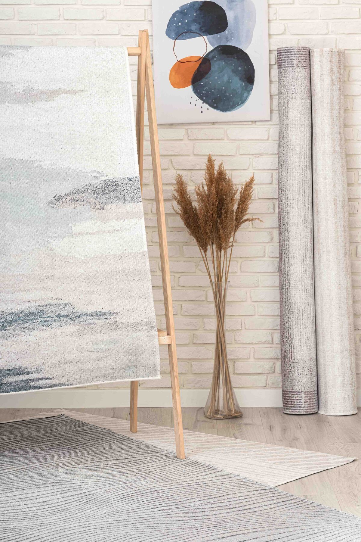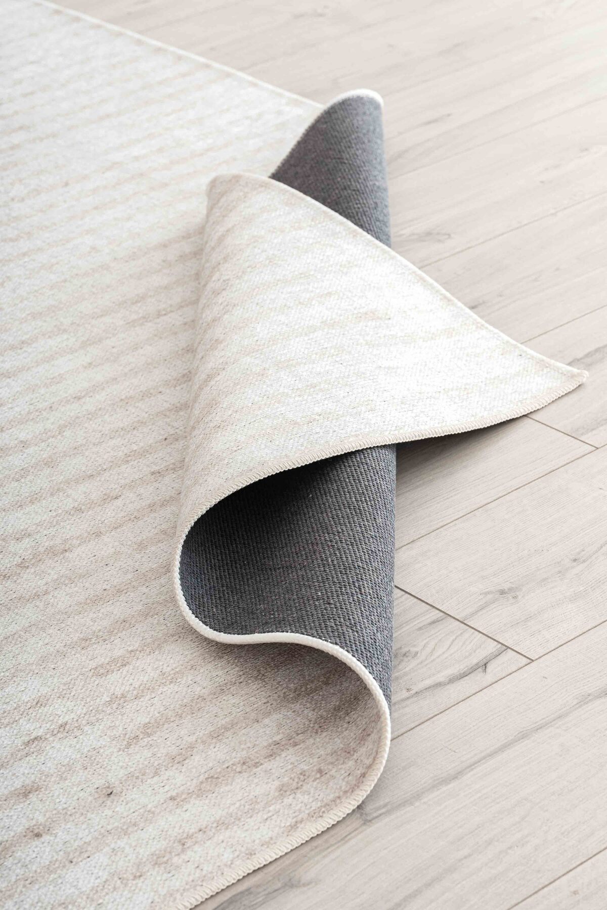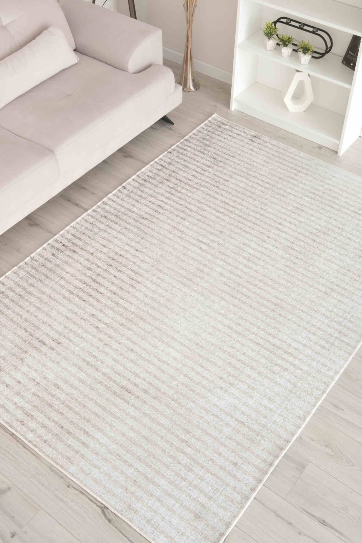 Eskitme Çizgili Desenli Yıkanabilir Kaymaz Taban Şönil Bej Açık Krem Salon Halısı 4134 Eskitme Çizgili Desenli Yıkanabilir Kaymaz Taban Şönil Bej Açık Krem Salon Halısı 4134 160 x 230