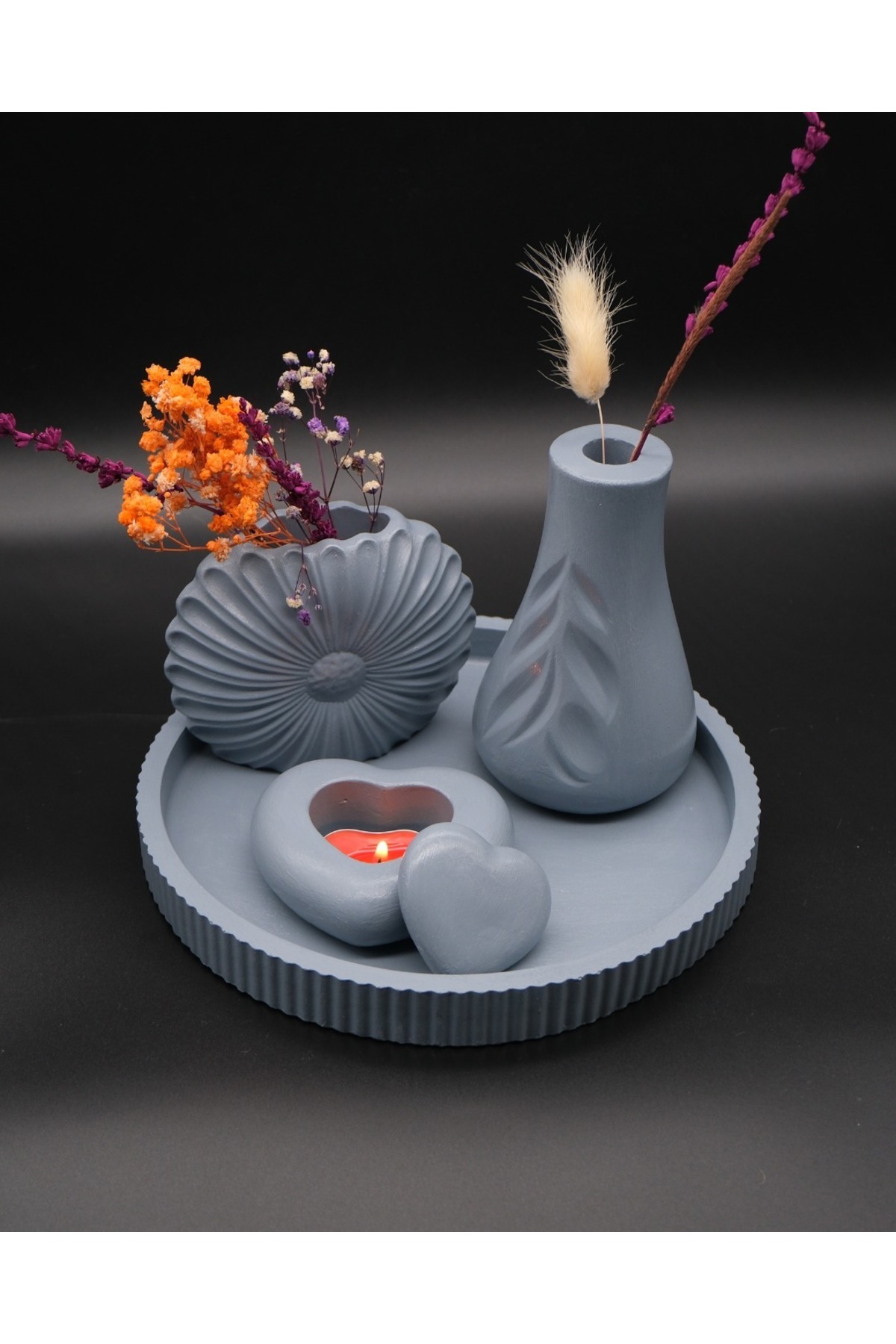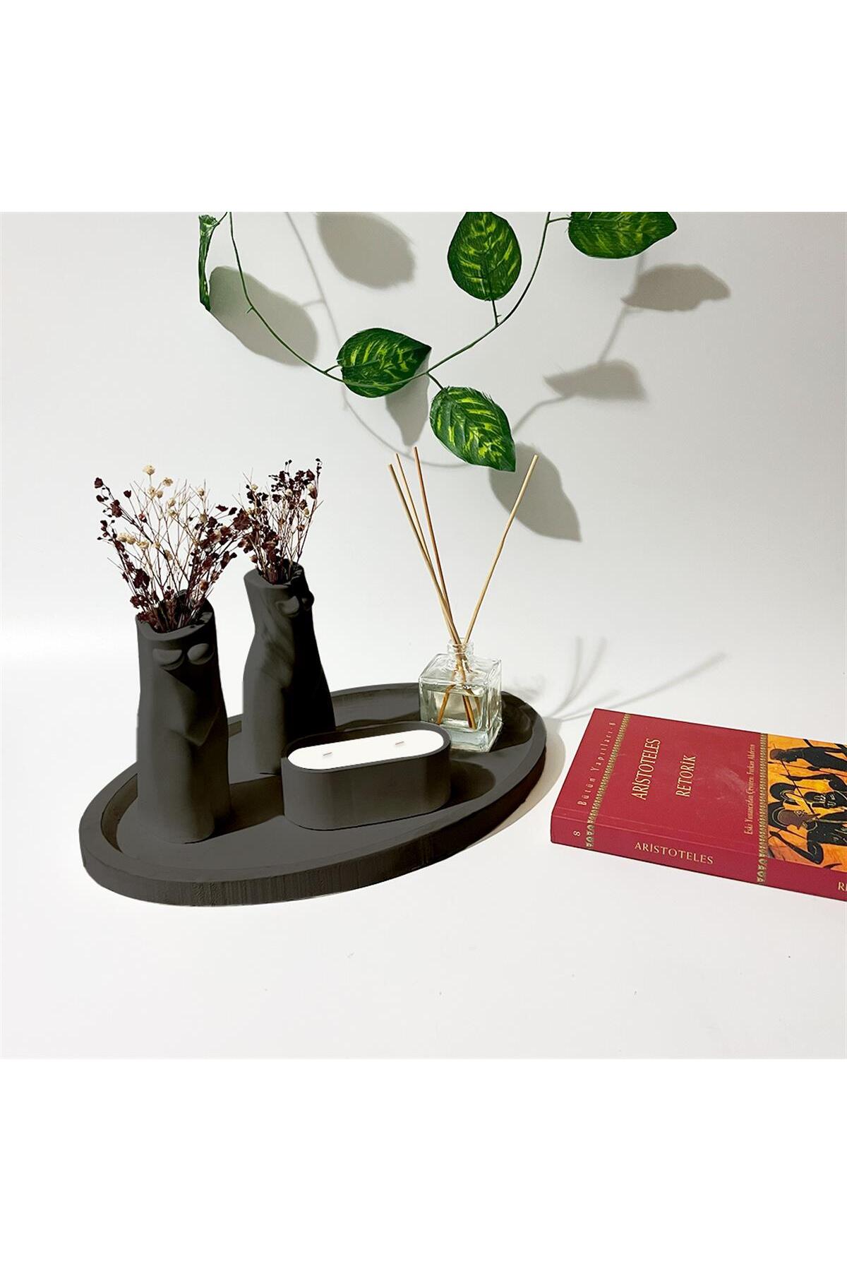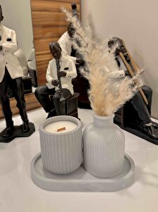 Özel Tasarım Mum Vazo Ve Tepsi Aksesuar Seti Özel Tasarım Mum Vazo Ve Tepsi Aksesuar Seti Antrasitikiliset تک سایز