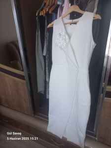 Özel Tasarım Gül Detay Kruvaze Yaka Taş Detaylı Asimetrik Kesim Elbise Özel Tasarım Gül Detay Kruvaze Yaka Taş Detaylı Asimetrik Kesim Elbise NP08 2XL