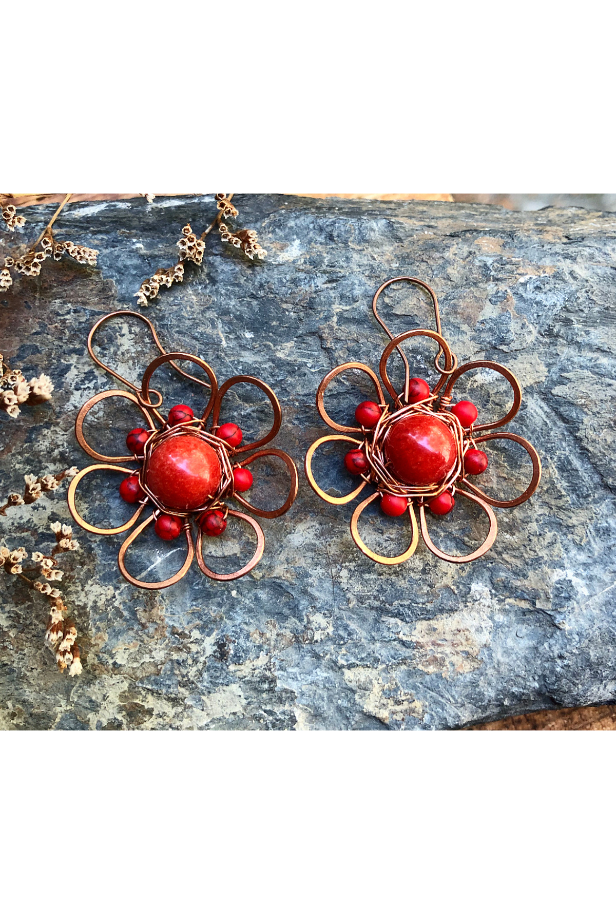 El yapımı bakır tel sarma AMETİST taşlı küpe El yapımı bakır tel sarma AMETİST taşlı küpe 033 تک سایز