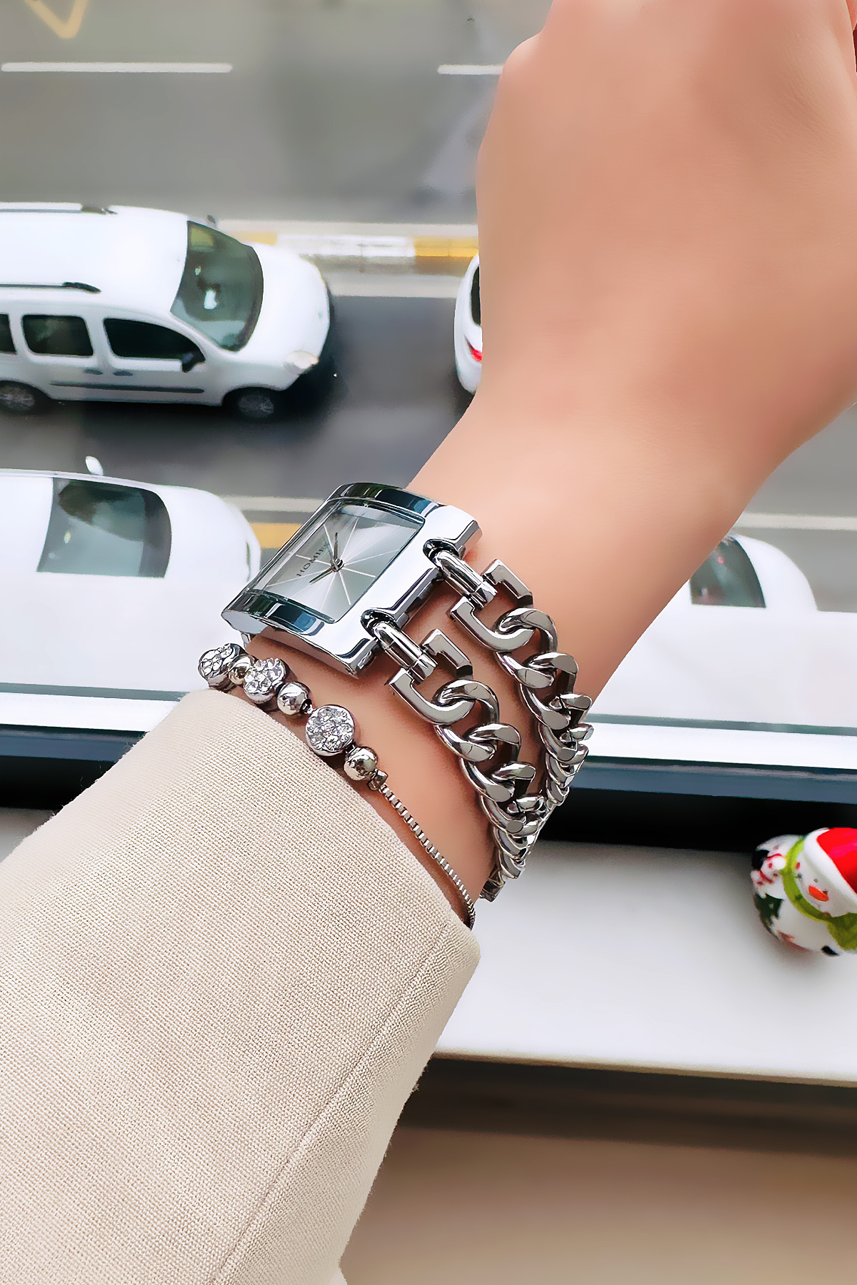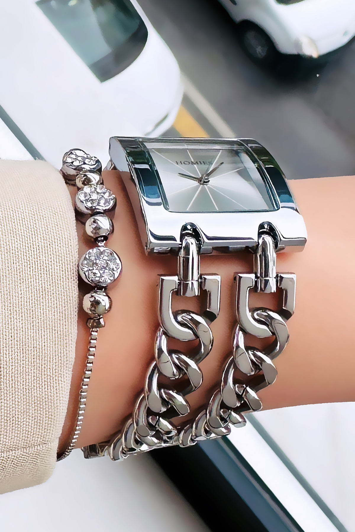 Özel Kutulu Zincirli Kadın Kol Saati 3 ATM Su Geçirmez Gümüş Renk Çelik Kordon + Bileklik HMBY2041C4 Özel Kutulu Zincirli Kadın Kol Saati 3 ATM Su Geçirmez Gümüş Renk Çelik Kordon + Bileklik HMBY2041C4 تک سایز