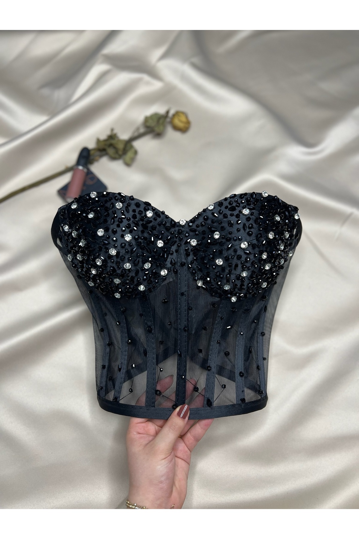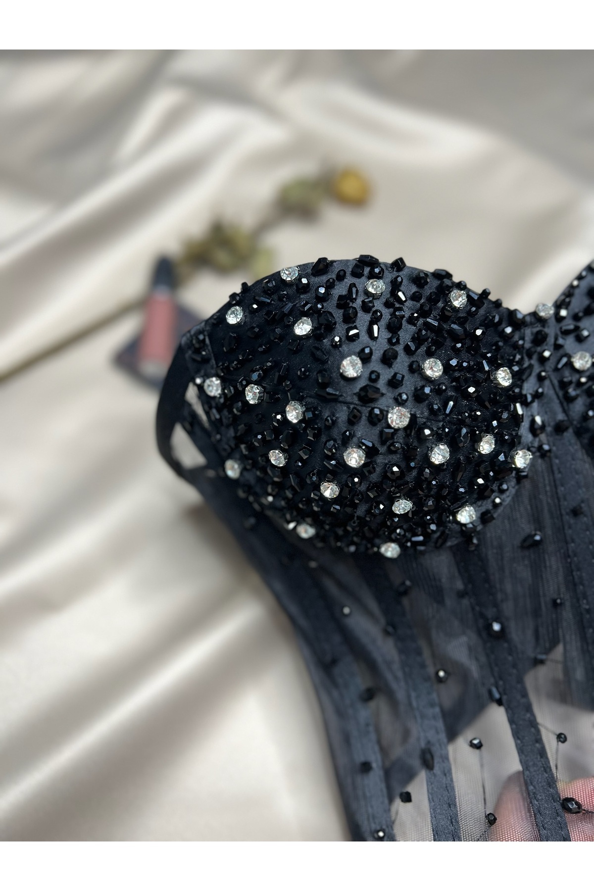 Transparan Ful Taş İşleme Korse Büstiyer Taşlı Model - Siyah & Gümüş Taş İşleme Transparan Ful Taş İşleme Korse Büstiyer Taşlı Model - Siyah & Gümüş Taş İşleme TAŞ01 42