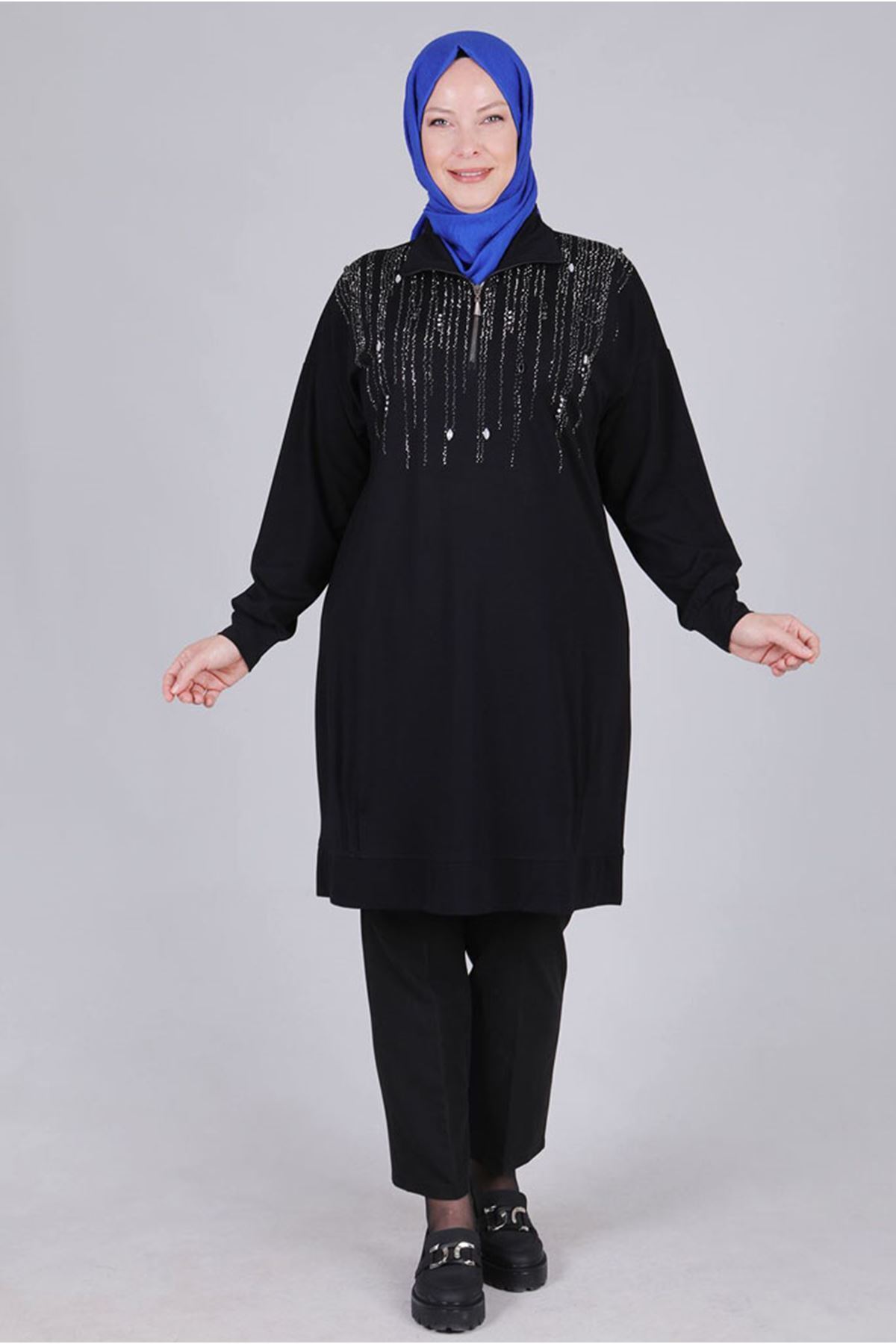 25K2045 - SİYAH - Büyük Beden Tesettür İki İplik Tunik 25K2045 - SİYAH - Büyük Beden Tesettür İki İplik Tunik 4XL