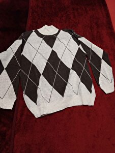 Kadın Baklava Desenli Dik Yaka Triko Kazak Kadın Baklava Desenli Dik Yaka Triko Kazak openex6100 L