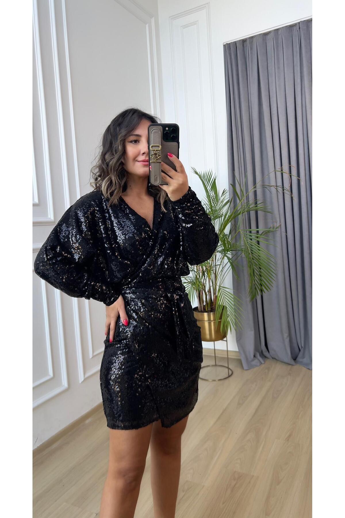 Siyah Payetli Kat Kat Model Kemerli Astarlı Yılbaşı Elbise Siyah Payetli Kat Kat Model Kemerli Astarlı Yılbaşı Elbise ELB1056 L