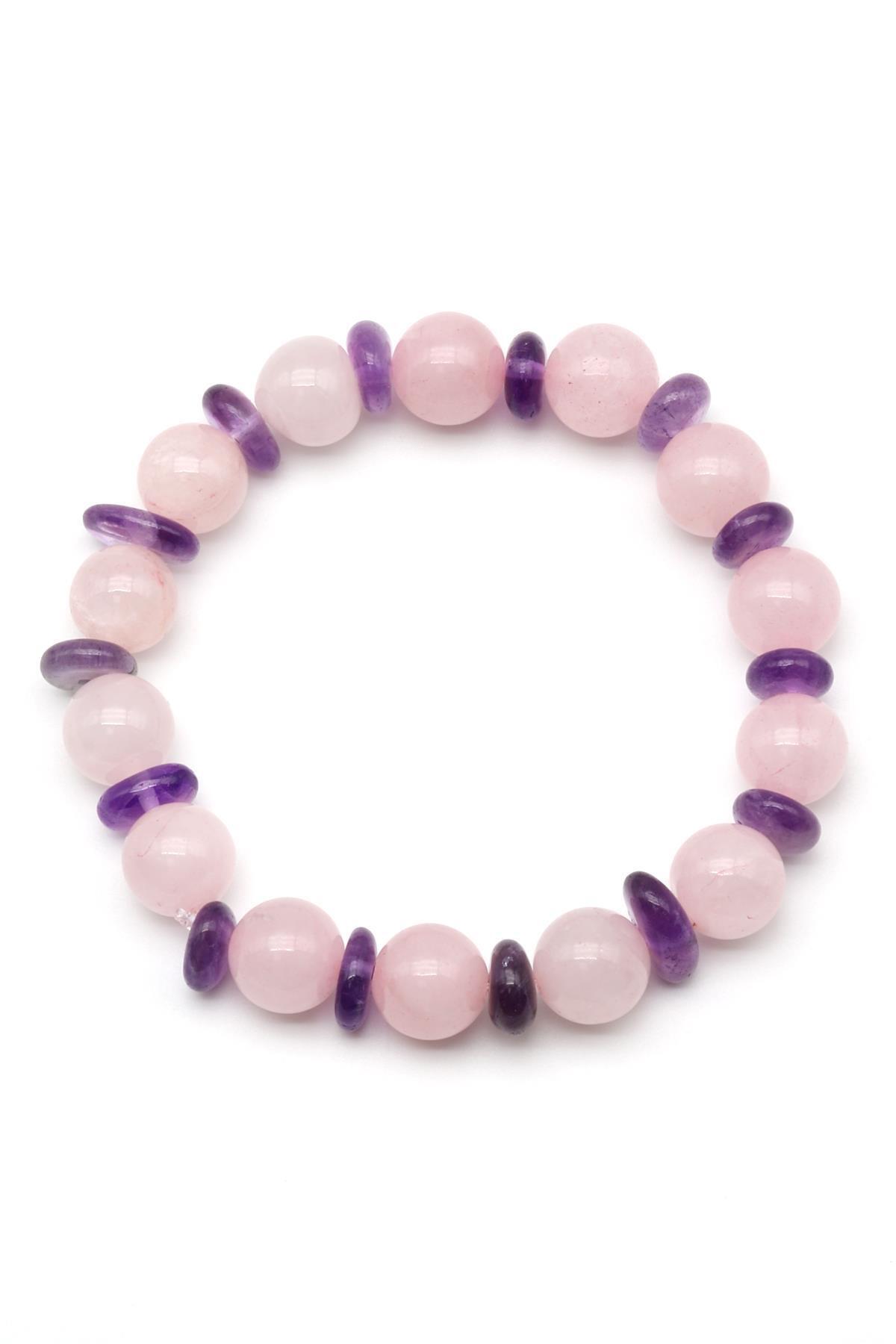 Pembe Kuvars-Ametist Doğal Taş Tasarım Bileklik 10 mm Küre Kesim Pembe Kuvars-Ametist Doğal Taş Tasarım Bileklik 10 mm Küre Kesim BLK-1331 تک سایز
