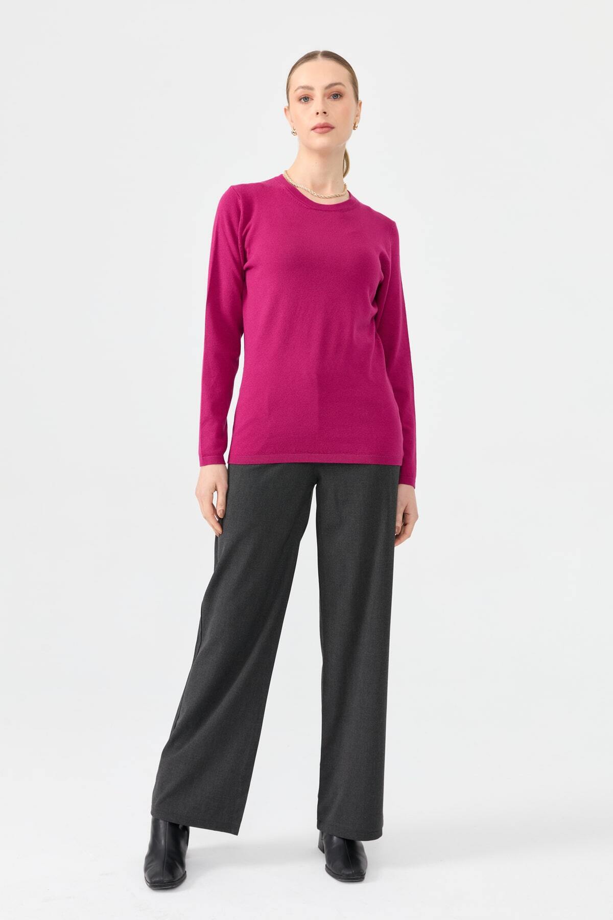 Kadın Likralı Uzun Kol Basic Sıfır Yaka Bluz Sıklamen Kadın Likralı Uzun Kol Basic Sıfır Yaka Bluz Sıklamen 20015 2XL