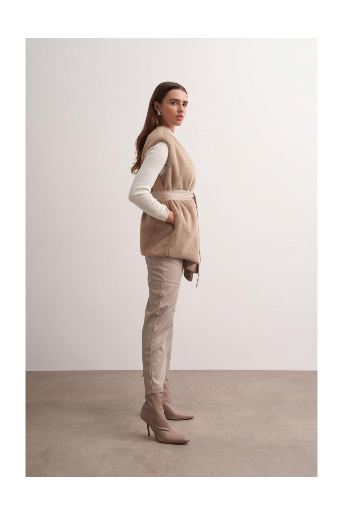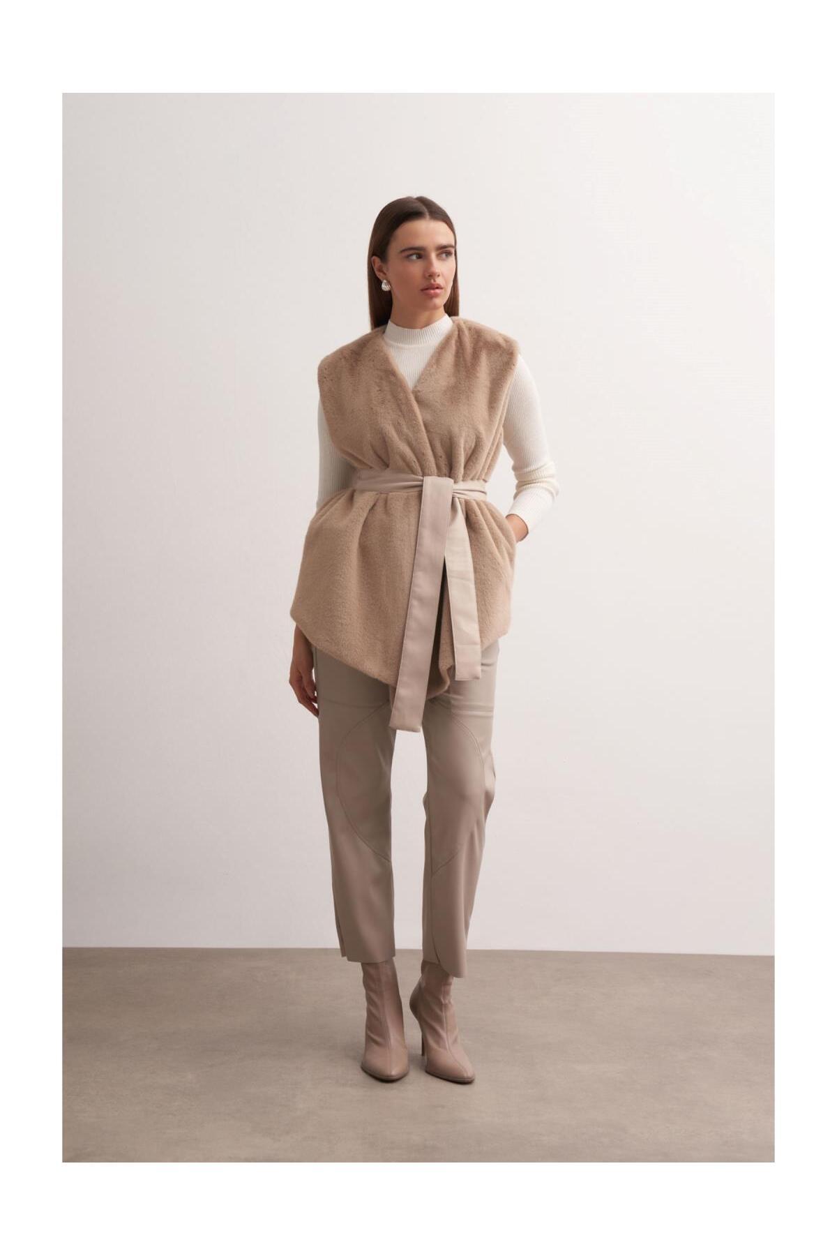 Deri Kuşaklı Asimetrik Kesim Peluş Yelek Deri Kuşaklı Asimetrik Kesim Peluş Yelek 578 3