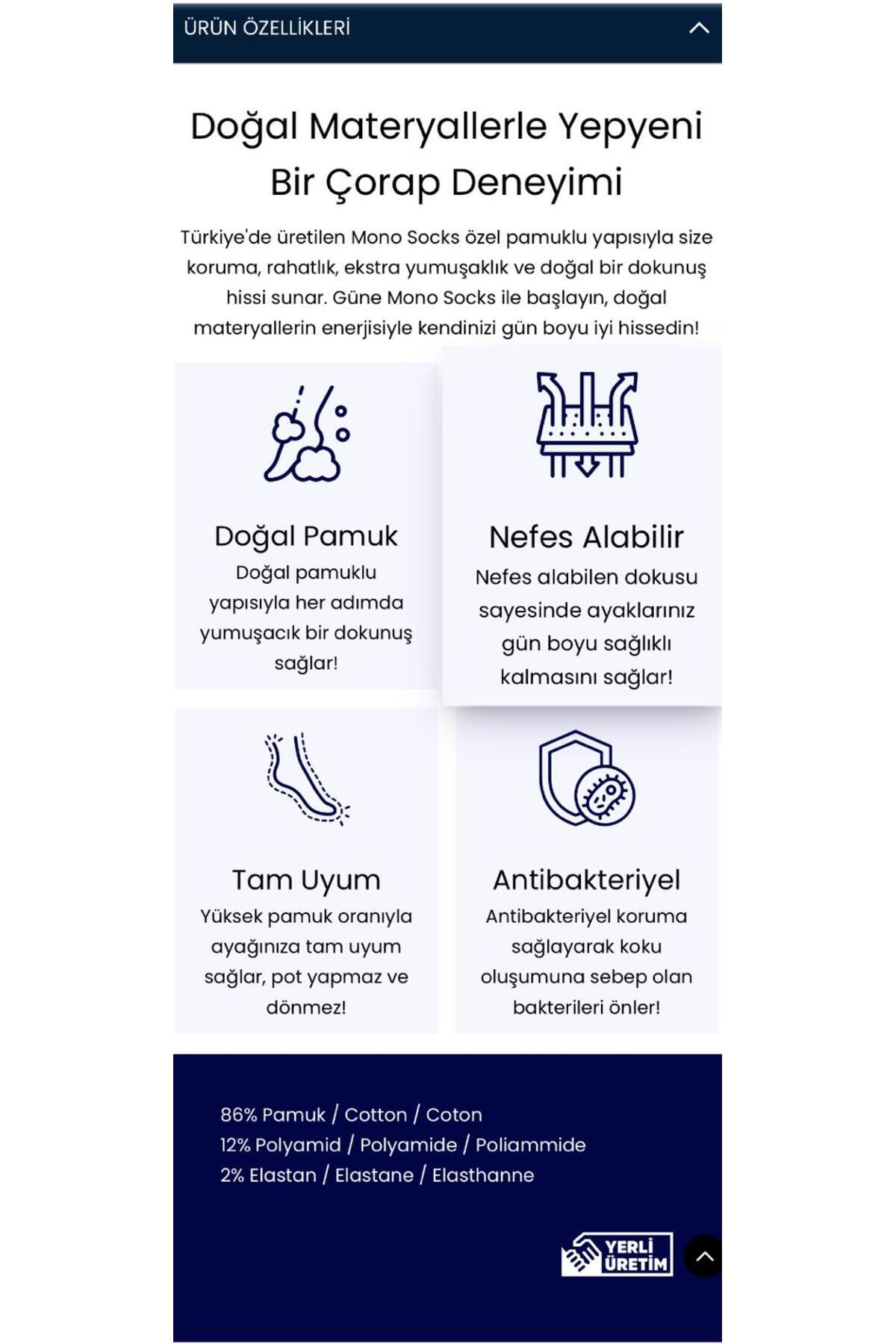 - Materyal Bileşeni : 86% Pamuk, 12% Poliamid, 2% Elastan