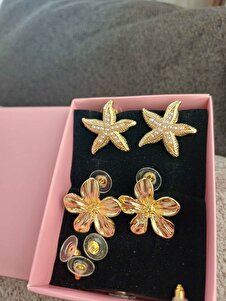 5 Yapraklı Çiçek Gold Küpe 5 Yapraklı Çiçek Gold Küpe kyola10091 3 cm