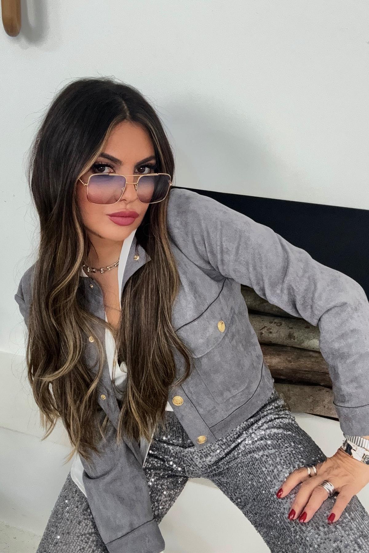 Taş Fiyonklu Tüvit Ceket Siyah Taş Fiyonklu Tüvit Ceket Siyah CKT0128 L
