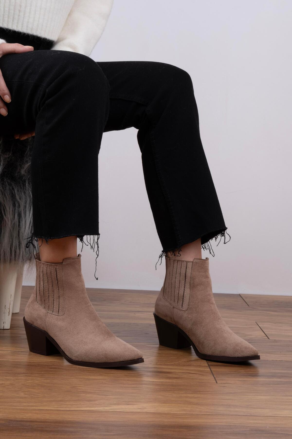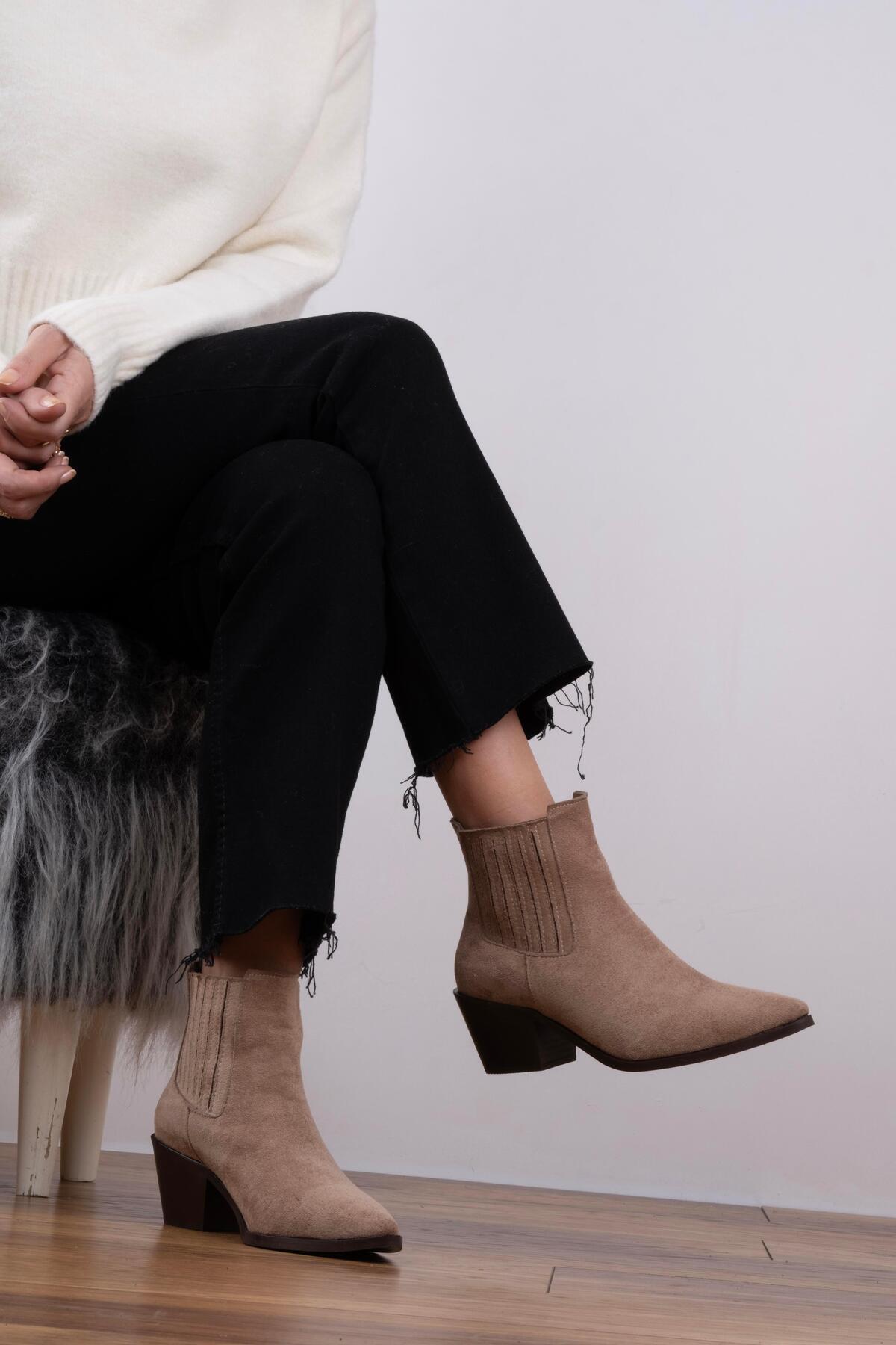 Kısa Kovboy Bot Vizon Süet Kısa Kovboy Bot Vizon Süet T1199 40