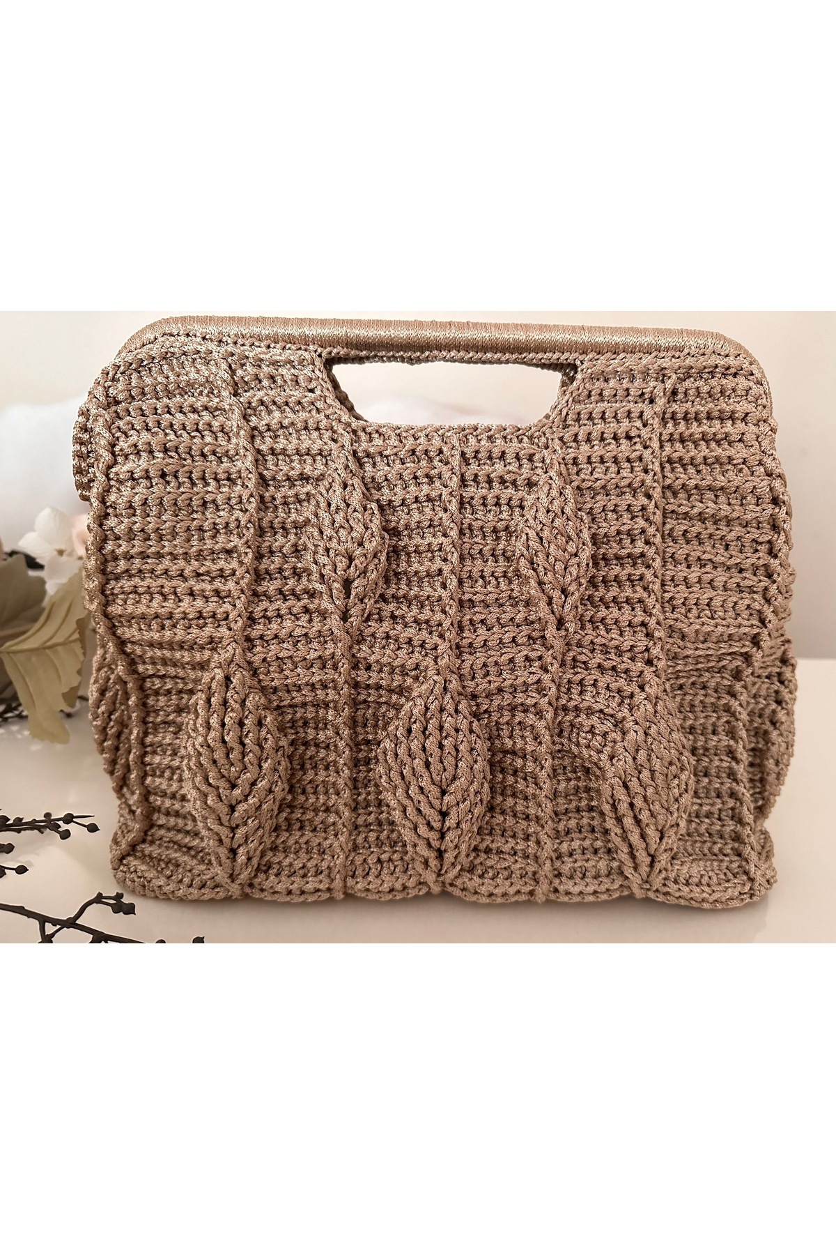 El Örgüsü Ekru Renk Triko Çanta El Örgüsü Ekru Renk Triko Çanta 33097 تک سایز