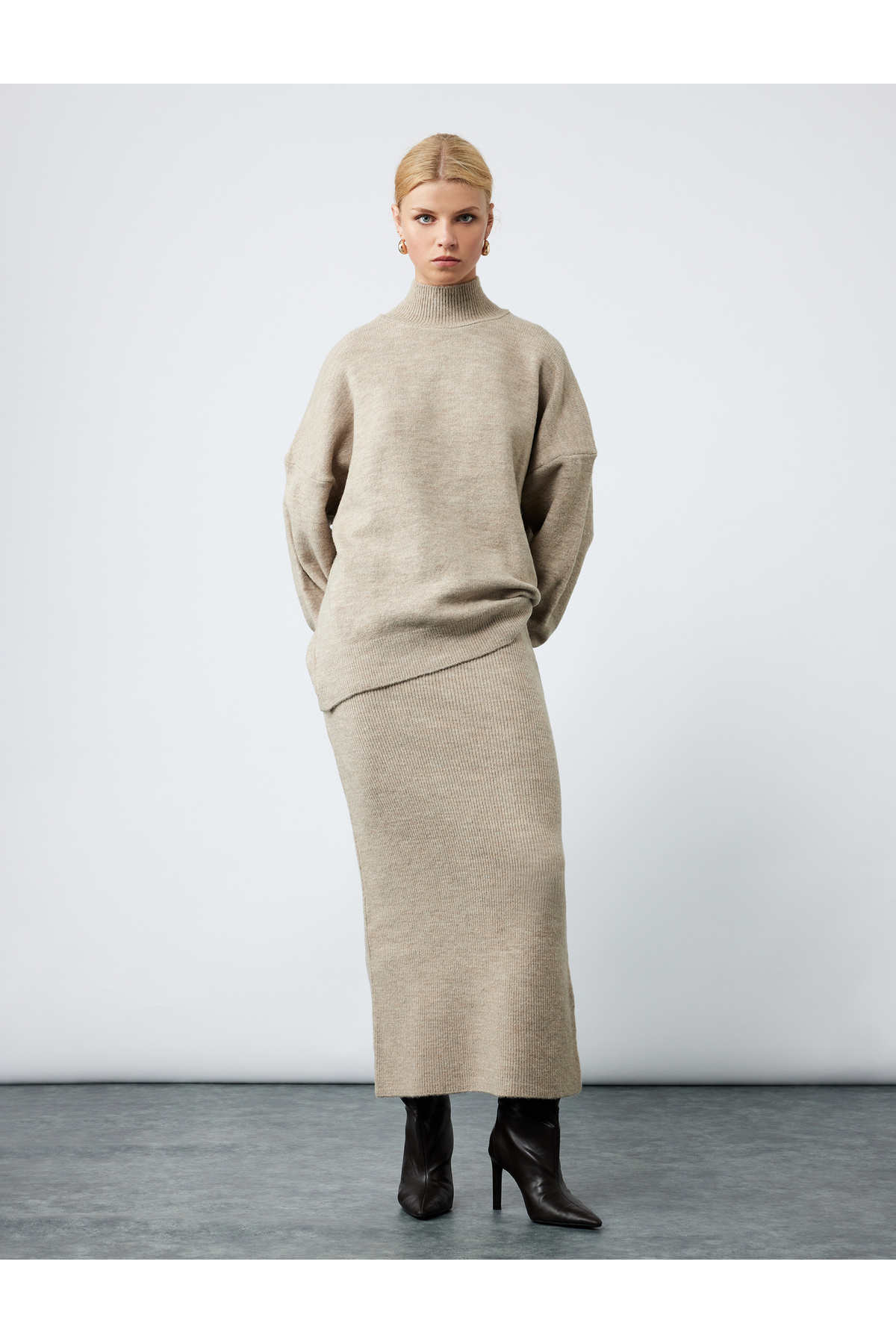 80116 Beli Lastikli Dikiş Yırtmaç Detaylı Triko Etek-Vizon M. 80116 Beli Lastikli Dikiş Yırtmaç Detaylı Triko Etek-Vizon M. 101A80116 Standart