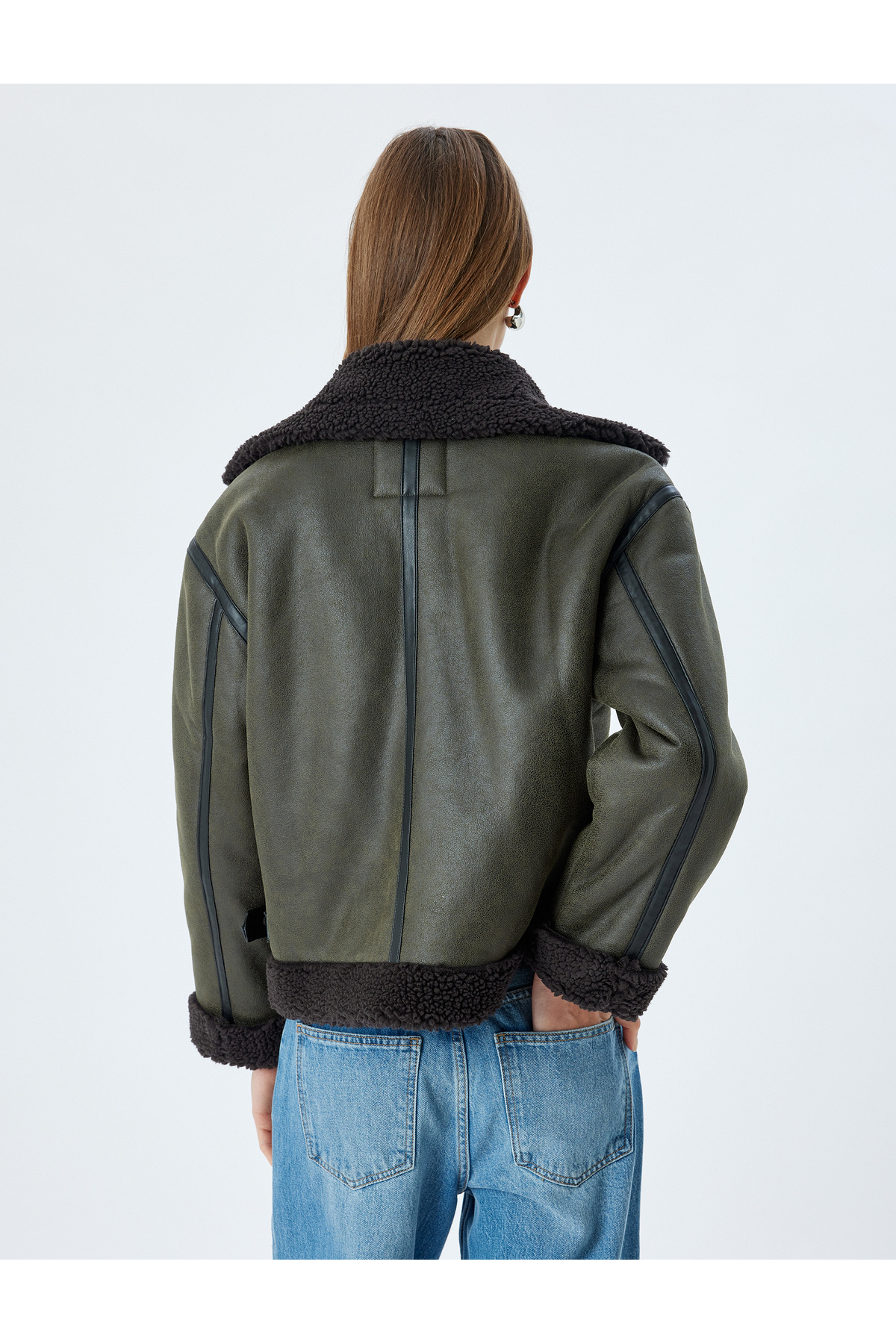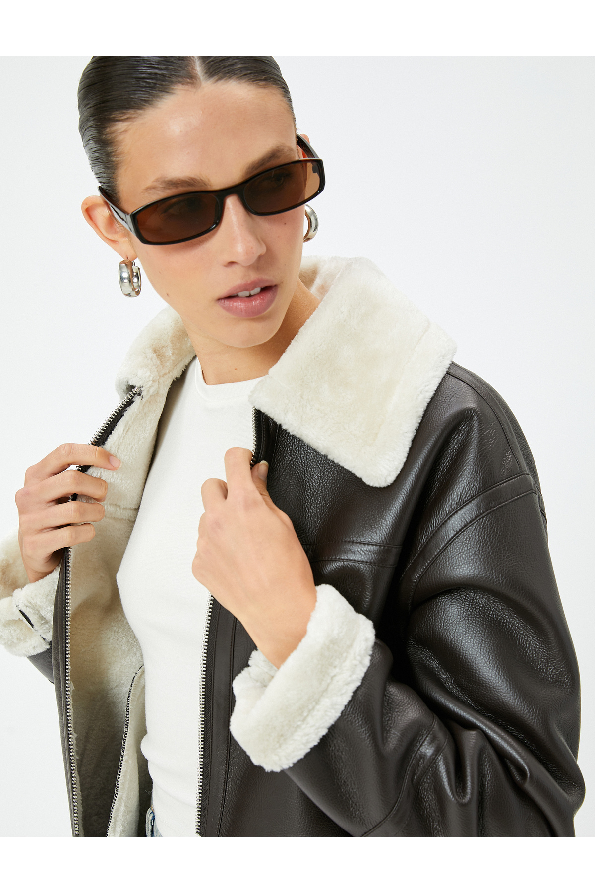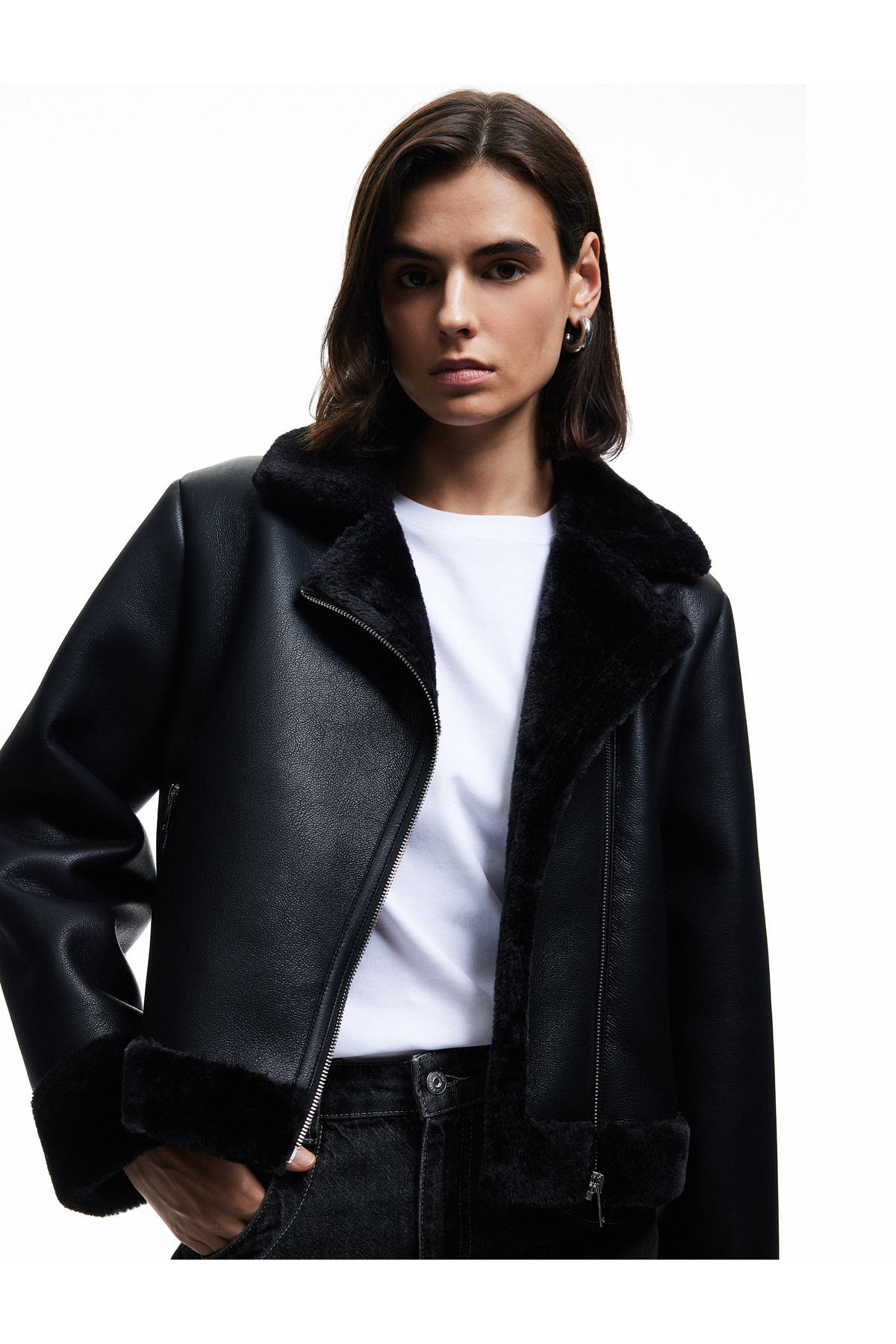 Suni Deri Kısa Oversize Biker Ceket Suni Kürklü Peluş Astarlı Cepli Suni Deri Kısa Oversize Biker Ceket Suni Kürklü Peluş Astarlı Cepli 5WAK20164EW 42