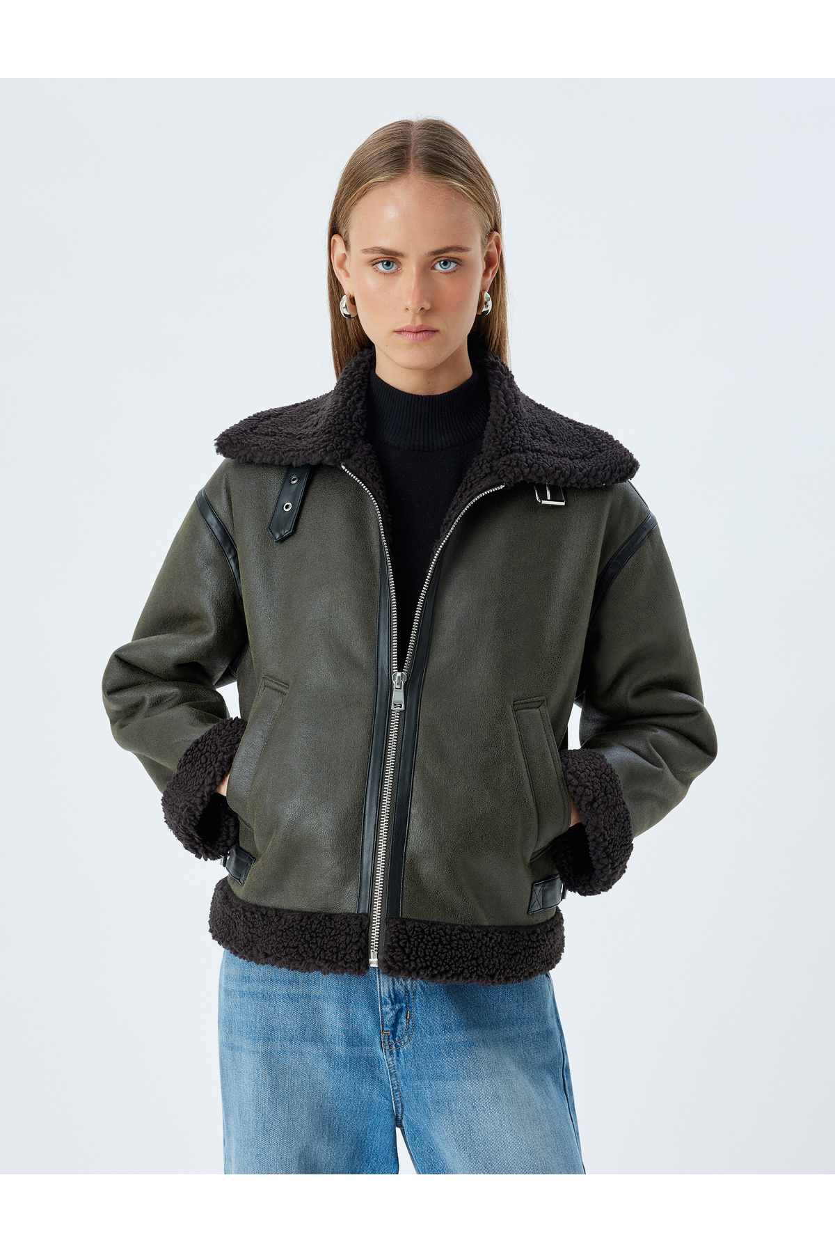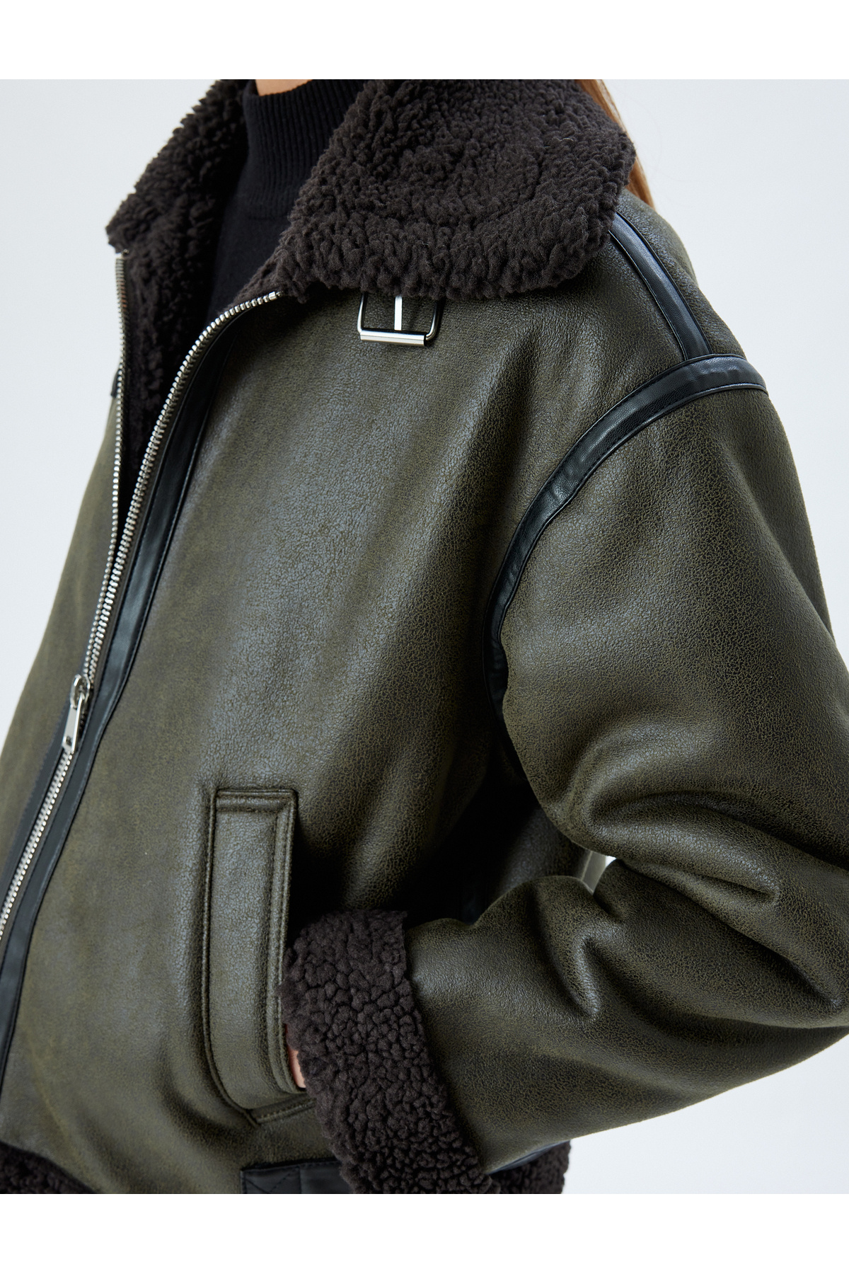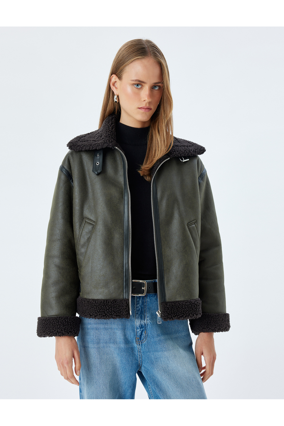 Suni Deri Kısa Oversize Biker Ceket Suni Kürklü Peluş Astarlı Cepli Suni Deri Kısa Oversize Biker Ceket Suni Kürklü Peluş Astarlı Cepli 5WAK20164EW 42