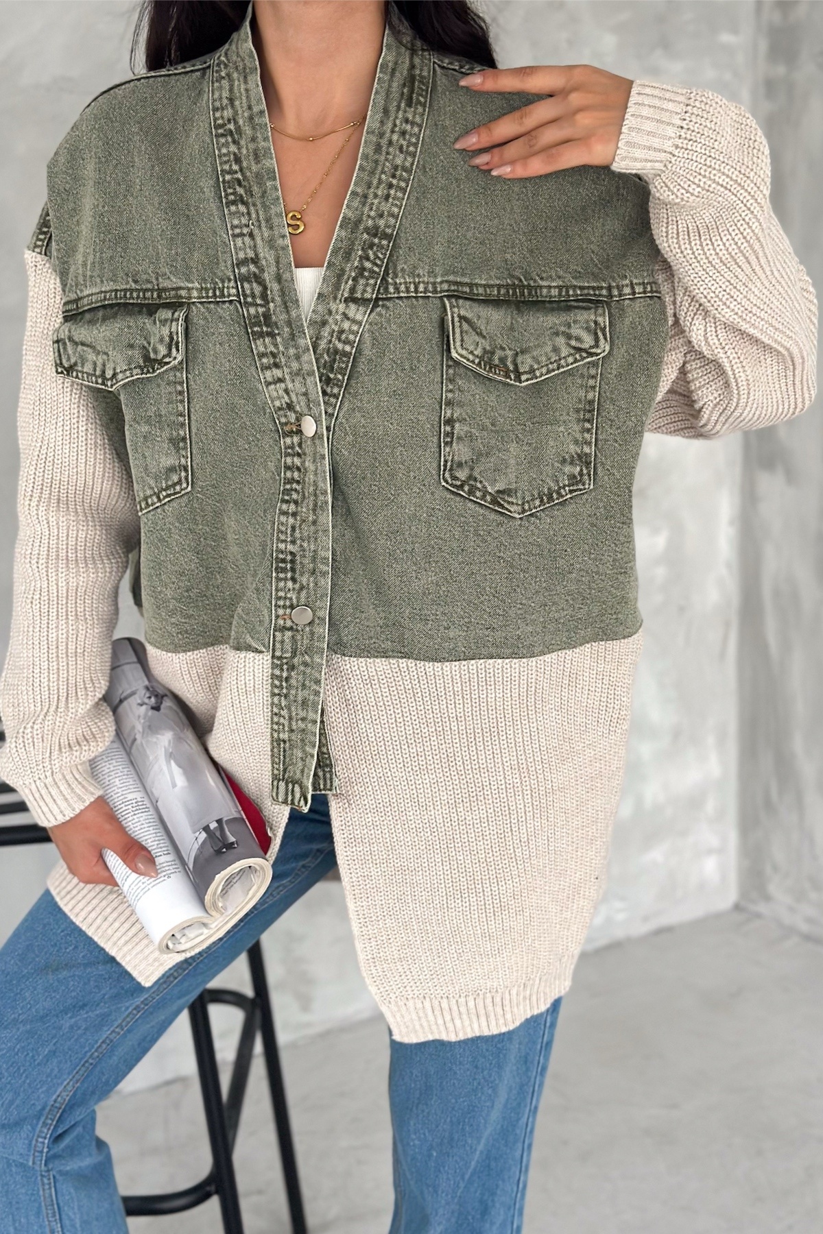 Kadın Haki Leopar Desen Standart Beden Triko Detaylı Tasarım Oversize Kot Ceket Kadın Haki Leopar Desen Standart Beden Triko Detaylı Tasarım Oversize Kot Ceket tvst99 Standart