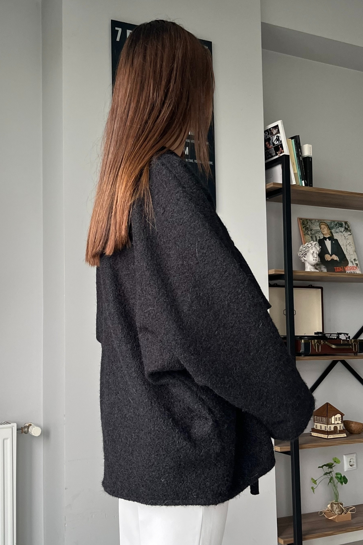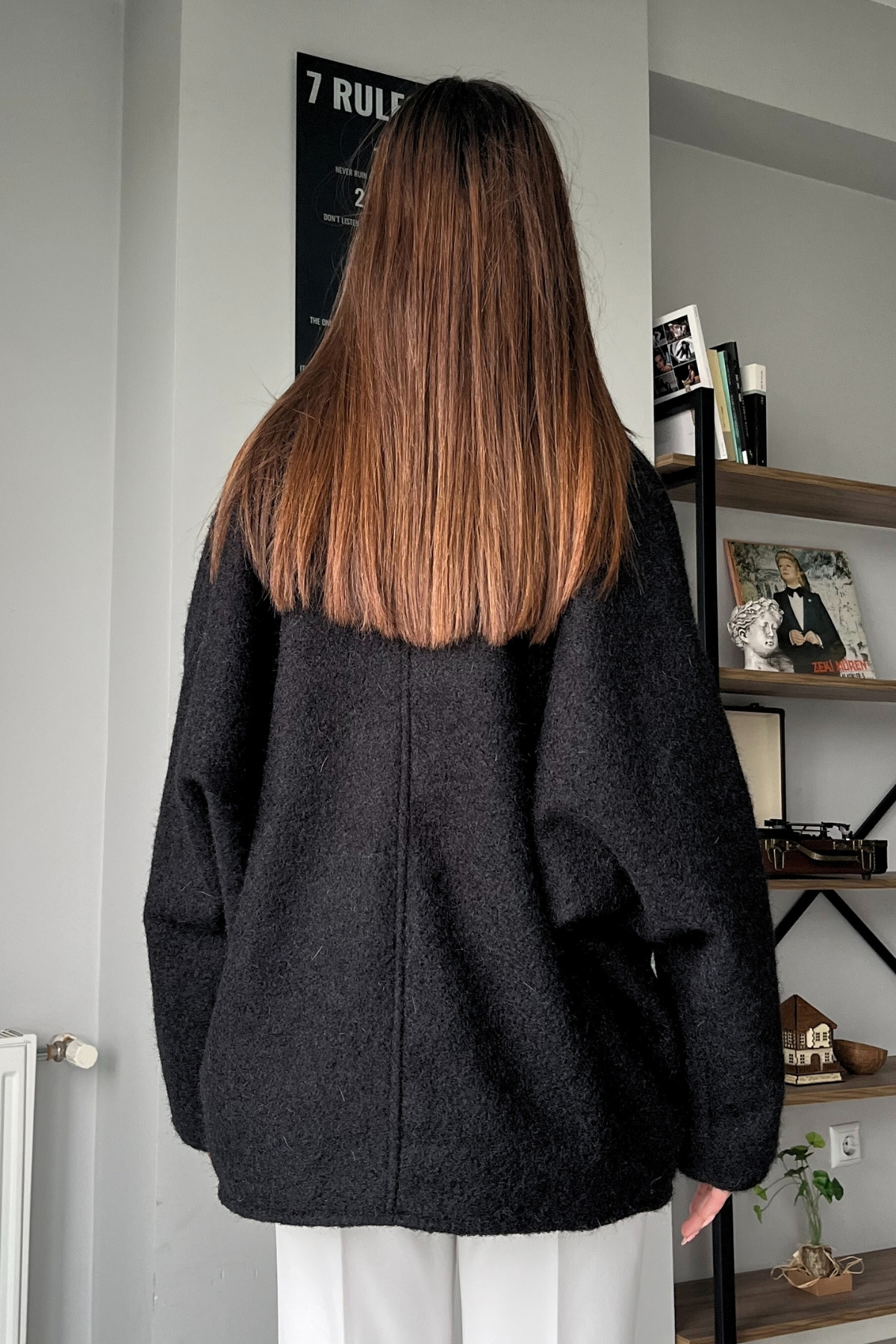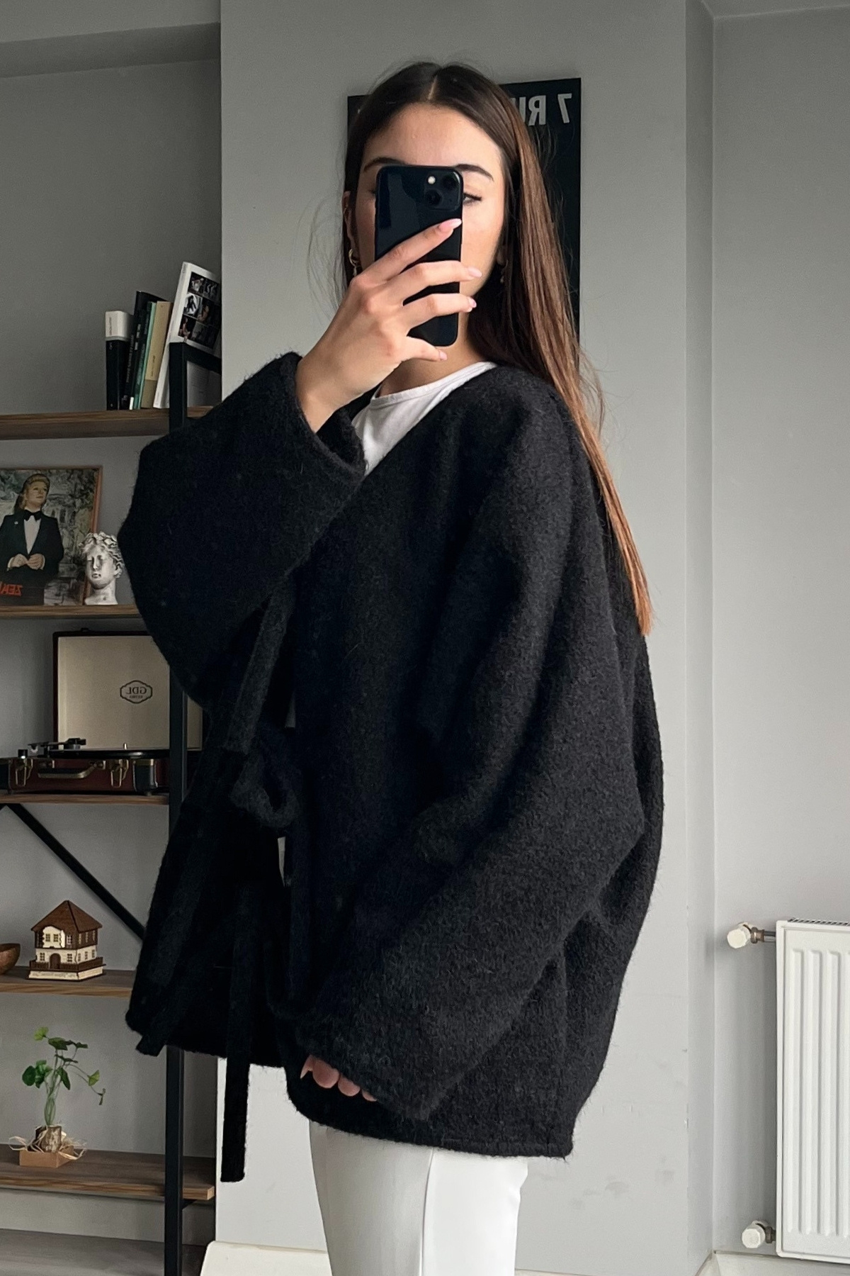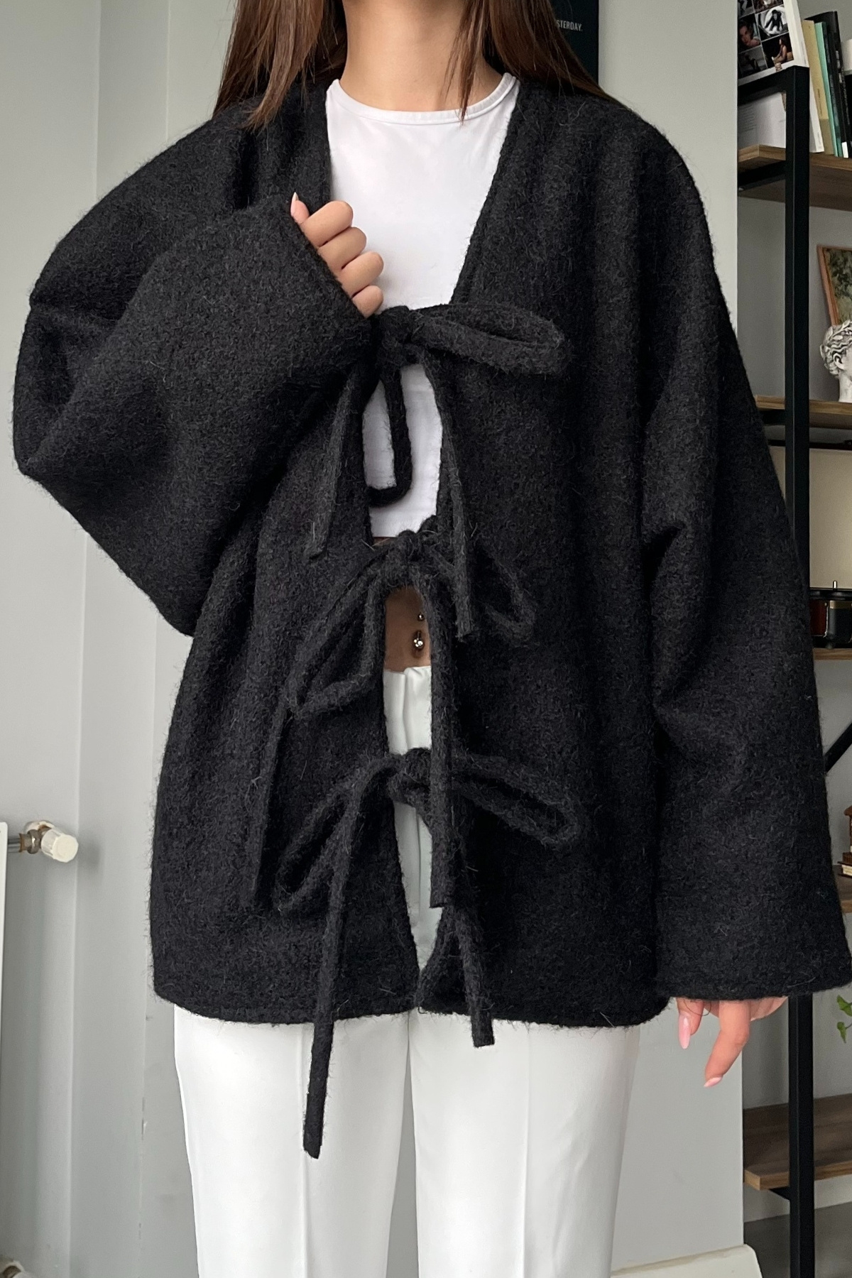 Kadın Siyah Kırçıllı Buklet Kumaş Saçaklı Astarlı Önden Bağlamalı Premium Kaşe Kimono Kaban Ceket Kadın Siyah Kırçıllı Buklet Kumaş Saçaklı Astarlı Önden Bağlamalı Premium Kaşe Kimono Kaban Ceket OHMS-3090