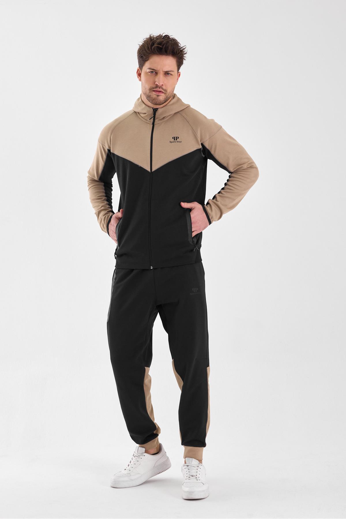 Erkek Double Face Kapüşonlu Fermuar Kapamalı Cepli Lastikli Paça Lacivert Bej Eşofman Takımı - 7763 Erkek Double Face Kapüşonlu Fermuar Kapamalı Cepli Lastikli Paça Lacivert Bej Eşofman Takımı - 7763 3XL