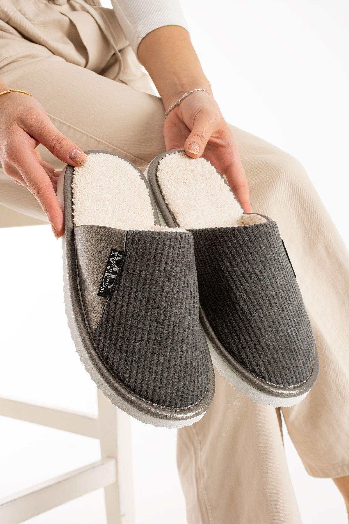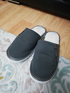 Unisex Gri Yarı Deri İçi Yünlü Terlik Unisex Gri Yarı Deri İçi Yünlü Terlik MD24535 45