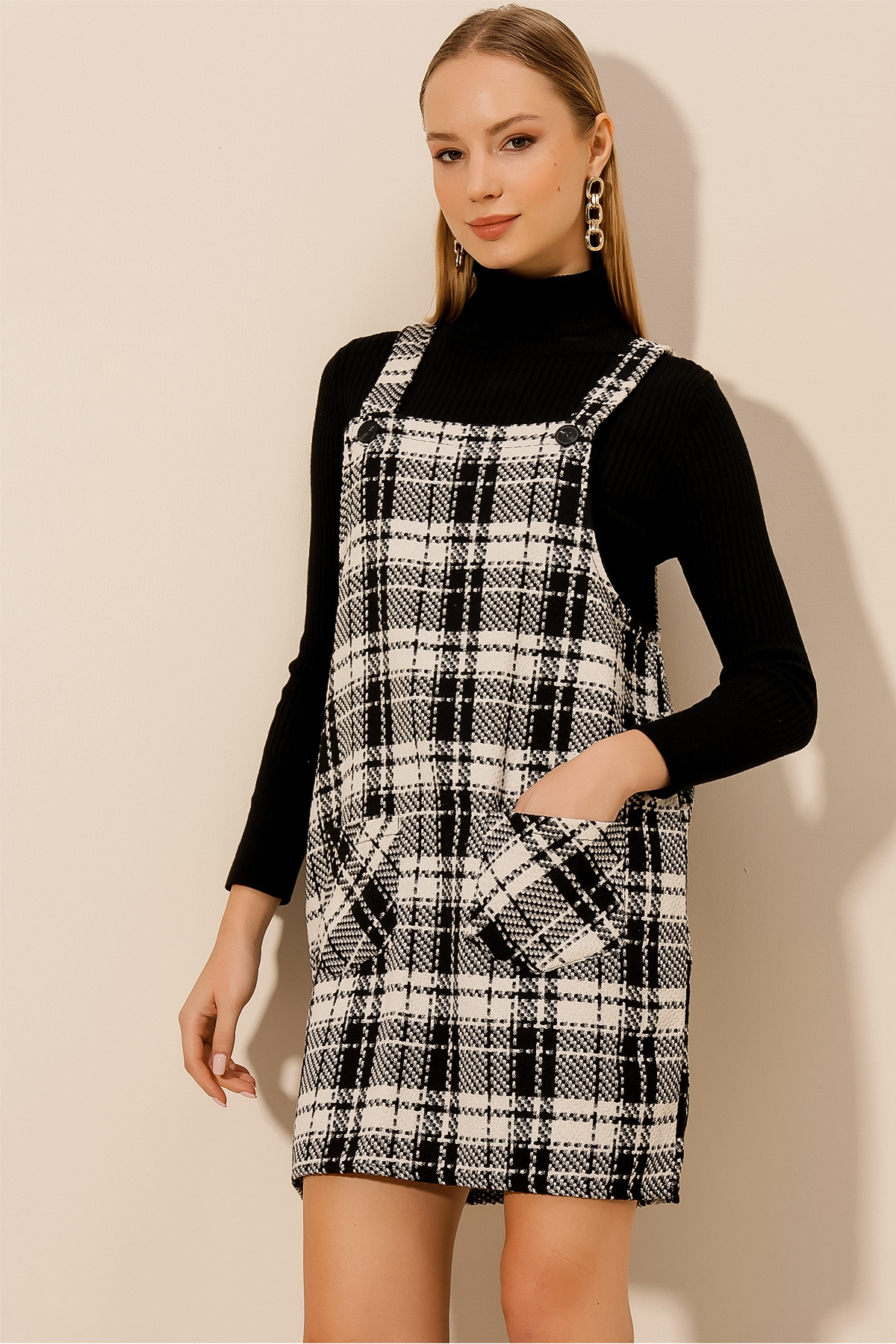 Kısa Siyah Tüvit Jile Elbise Kısa Siyah Tüvit Jile Elbise KCGM12515 48-50