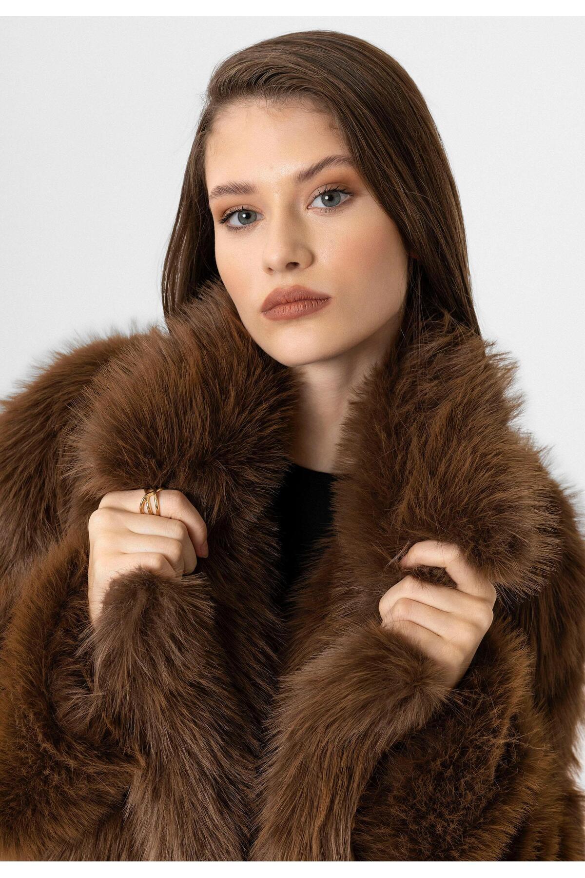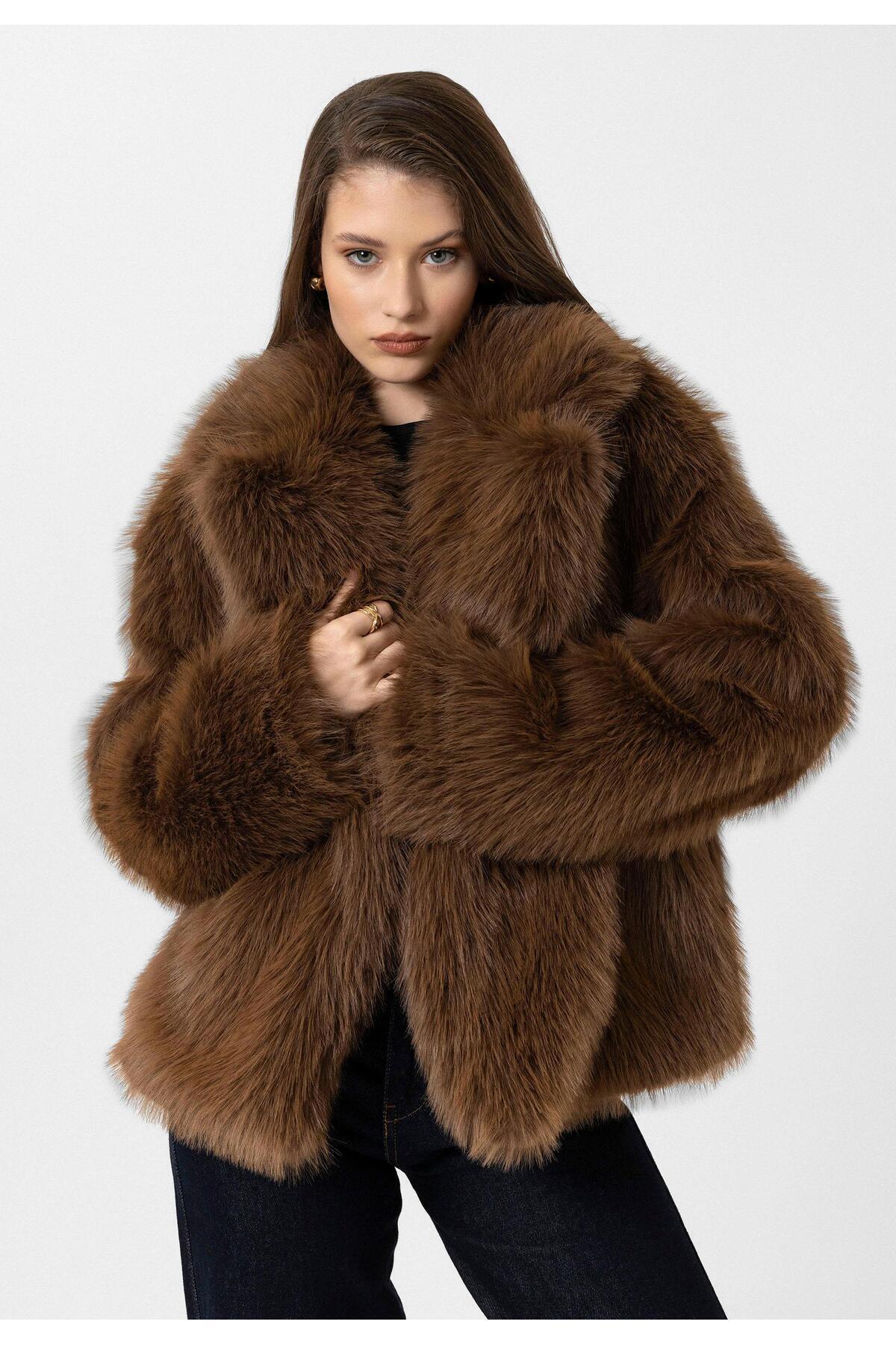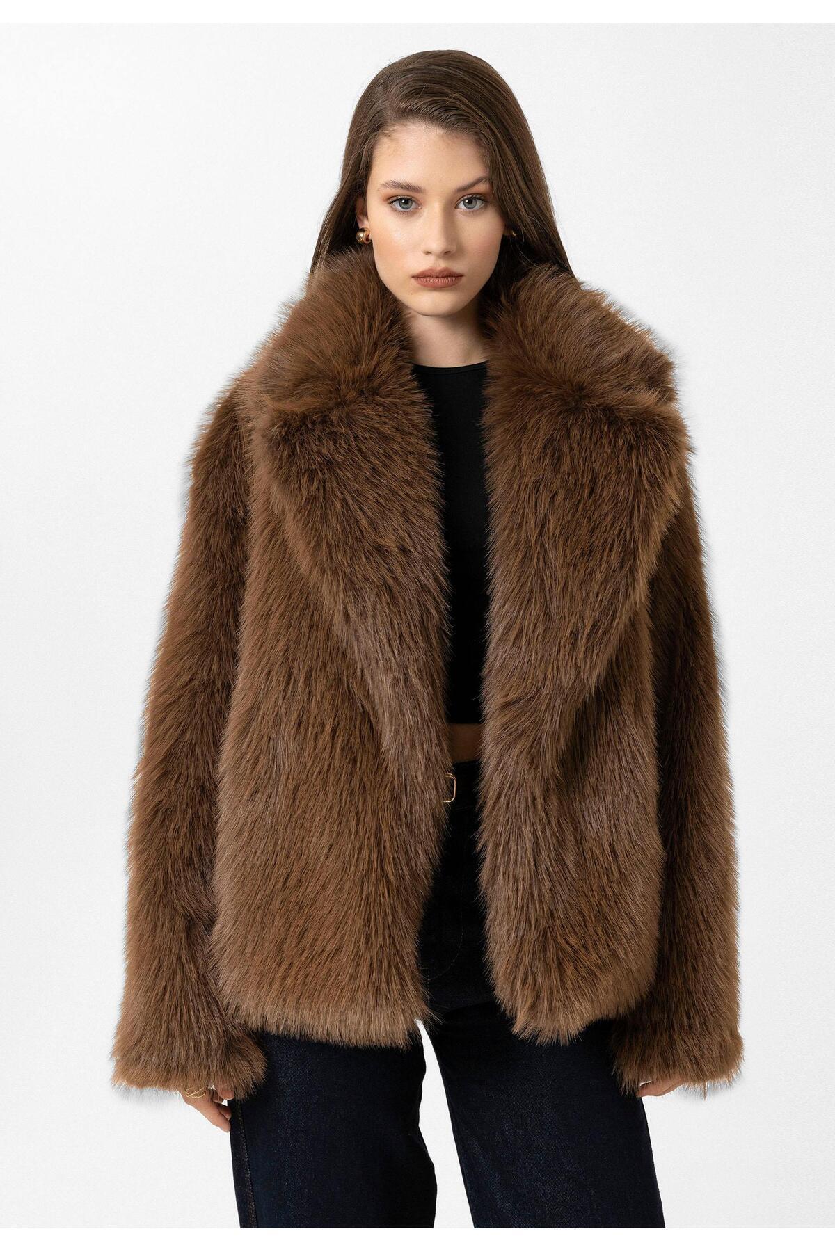 Kahve Kadın Ceket Yaka Suni Kürk Ceket Kahve Kadın Ceket Yaka Suni Kürk Ceket BA24Y417 L