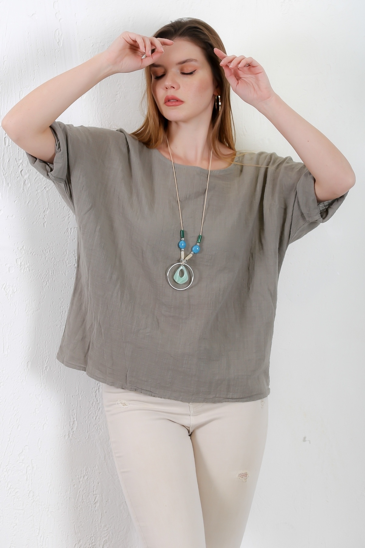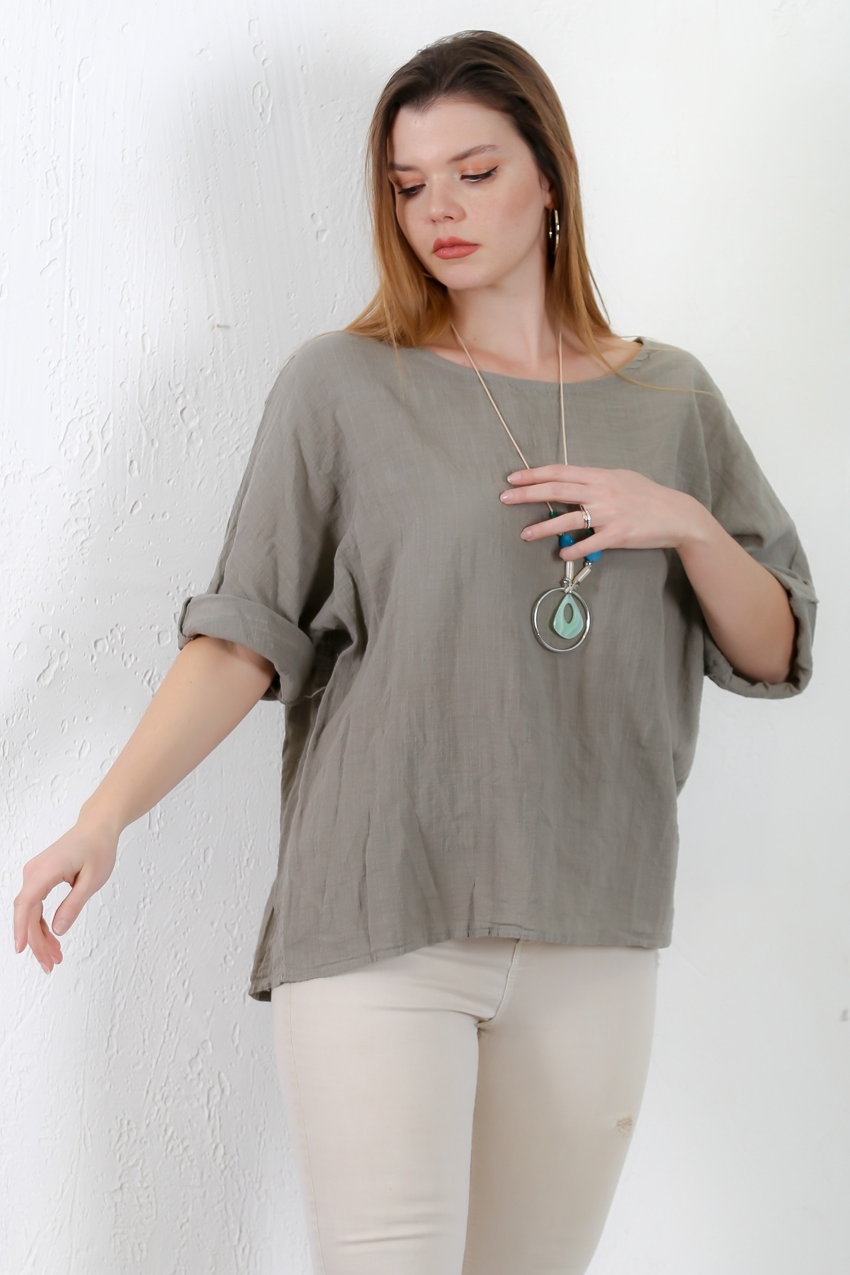 İtalyan Haki Havuz Yaka 3/4 Kol Casual Keten Karışımlı Dokuma Bluz İtalyan Haki Havuz Yaka 3/4 Kol Casual Keten Karışımlı Dokuma Bluz M10010200BL91628 2XL