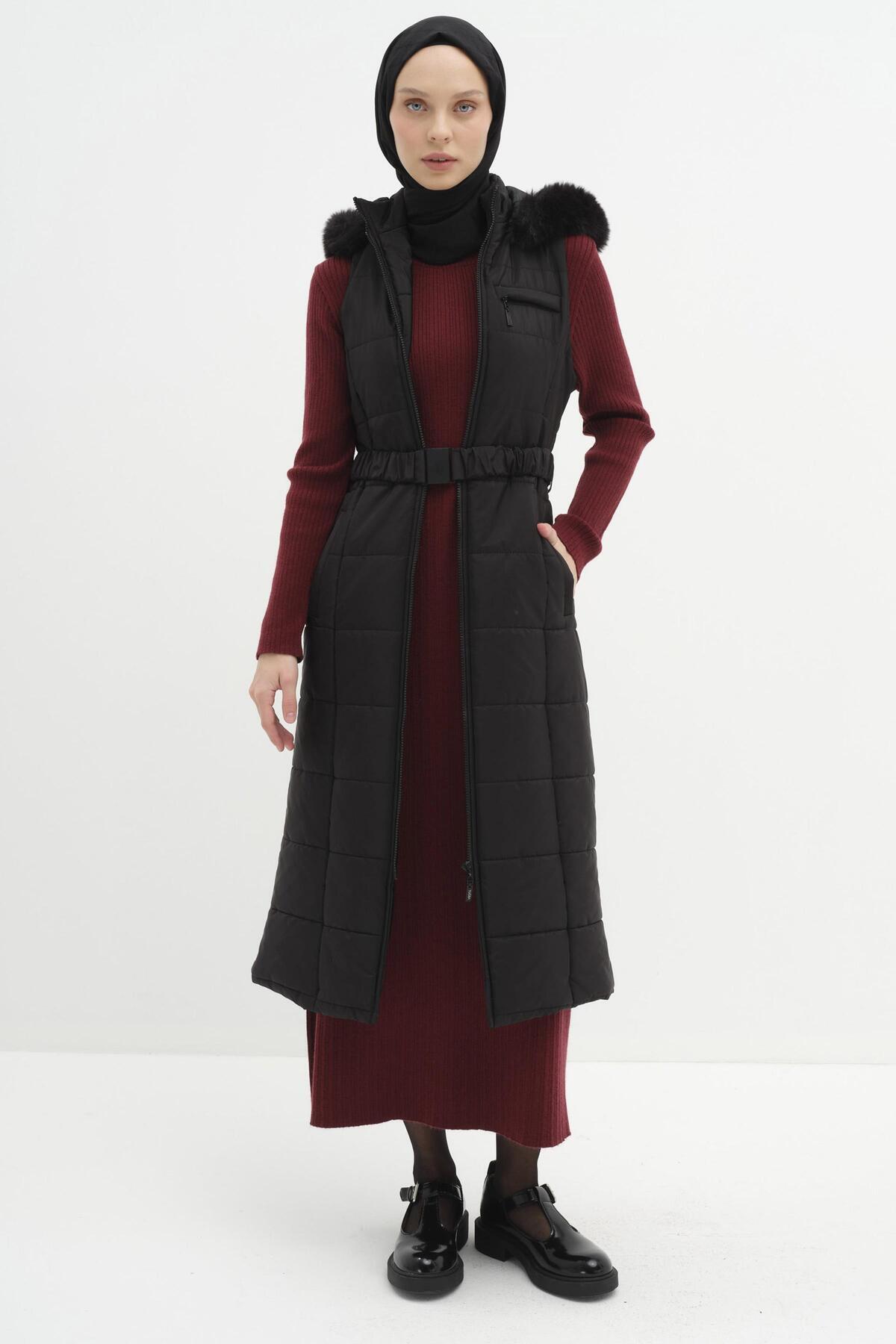 Kemerli Uzun Kapitone Yelek - Bej Kemerli Uzun Kapitone Yelek - Bej 242YE1025TB.01-02 42