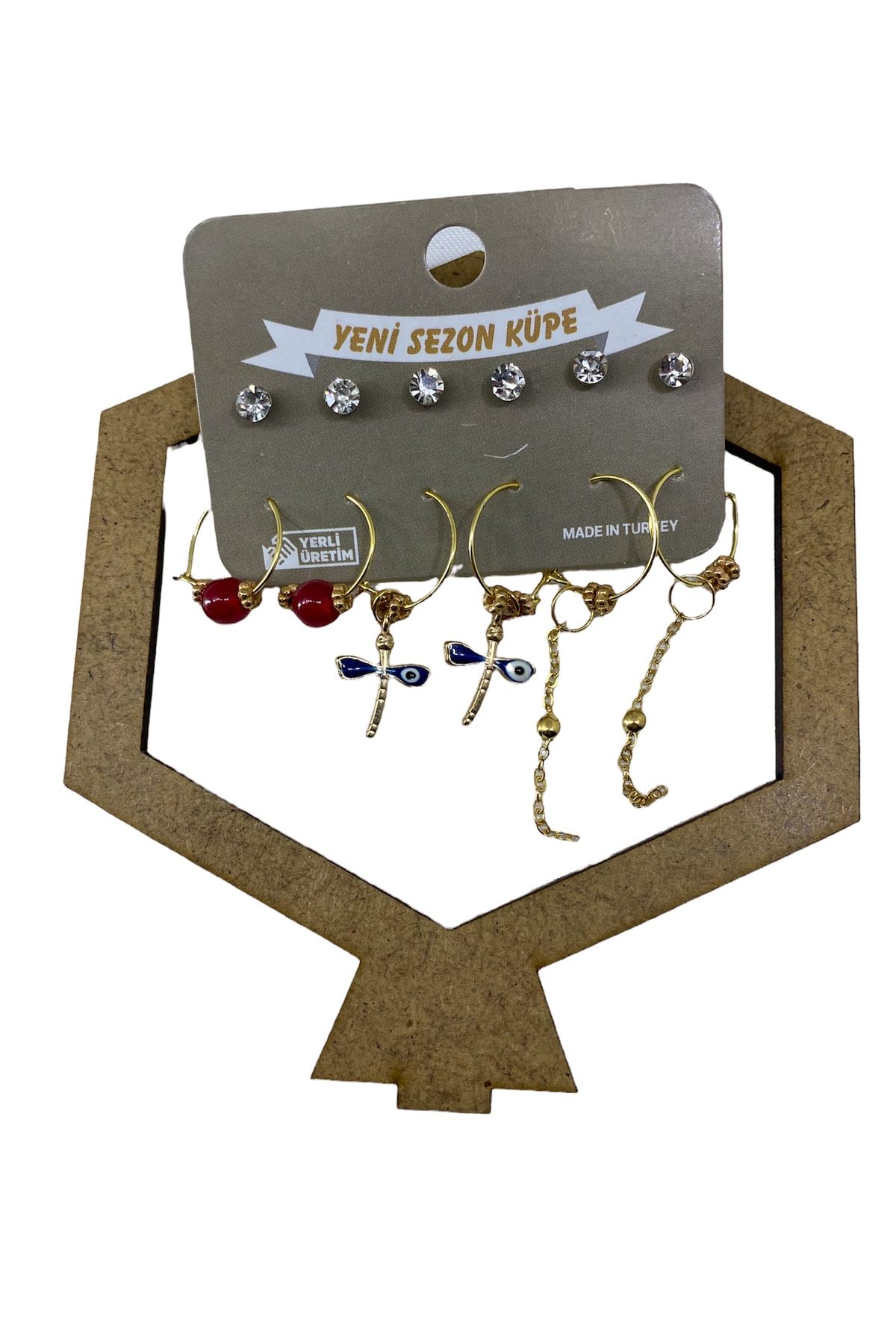 Kelebek Karpuz Nazar Boncuklu Balık Figürlü Gold Renk Küpe Kelebek Karpuz Nazar Boncuklu Balık Figürlü Gold Renk Küpe WJA3656038038 M