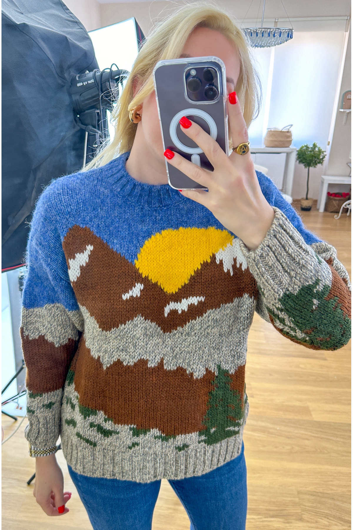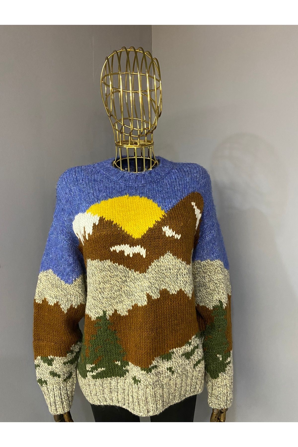 Dağ desenli bisiklet yakalı örgü kazak Dağ desenli bisiklet yakalı örgü kazak NVKADİG-MA17 S/M