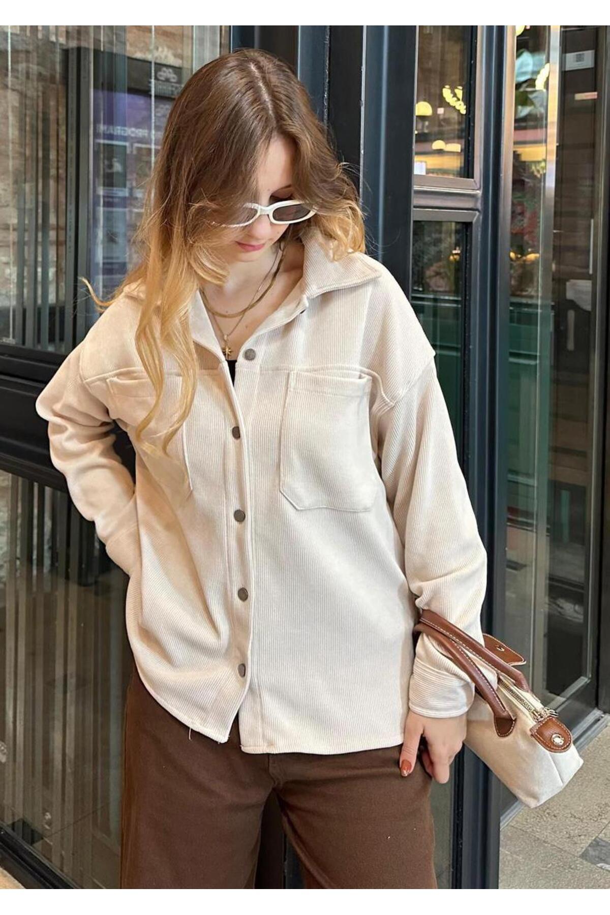 Bej Cep Detaylı Kadın Gömlek MG2241 Bej Cep Detaylı Kadın Gömlek MG2241 XL
