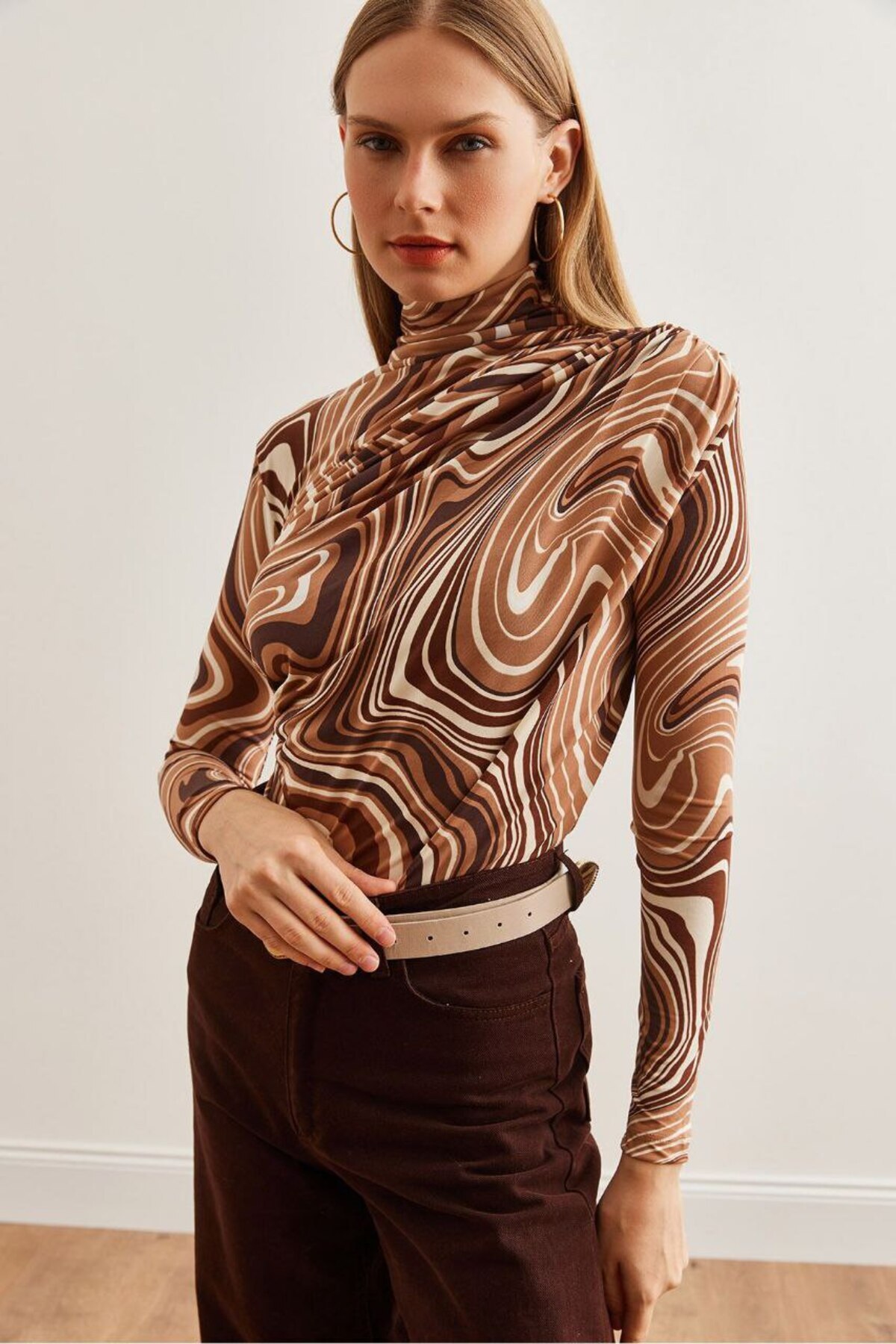 Kadın Bluz - Drape Detaylı Dökümlü Balıkçı Yaka Şık Bluz Kadın Bluz - Drape Detaylı Dökümlü Balıkçı Yaka Şık Bluz UBM-B-001192 L