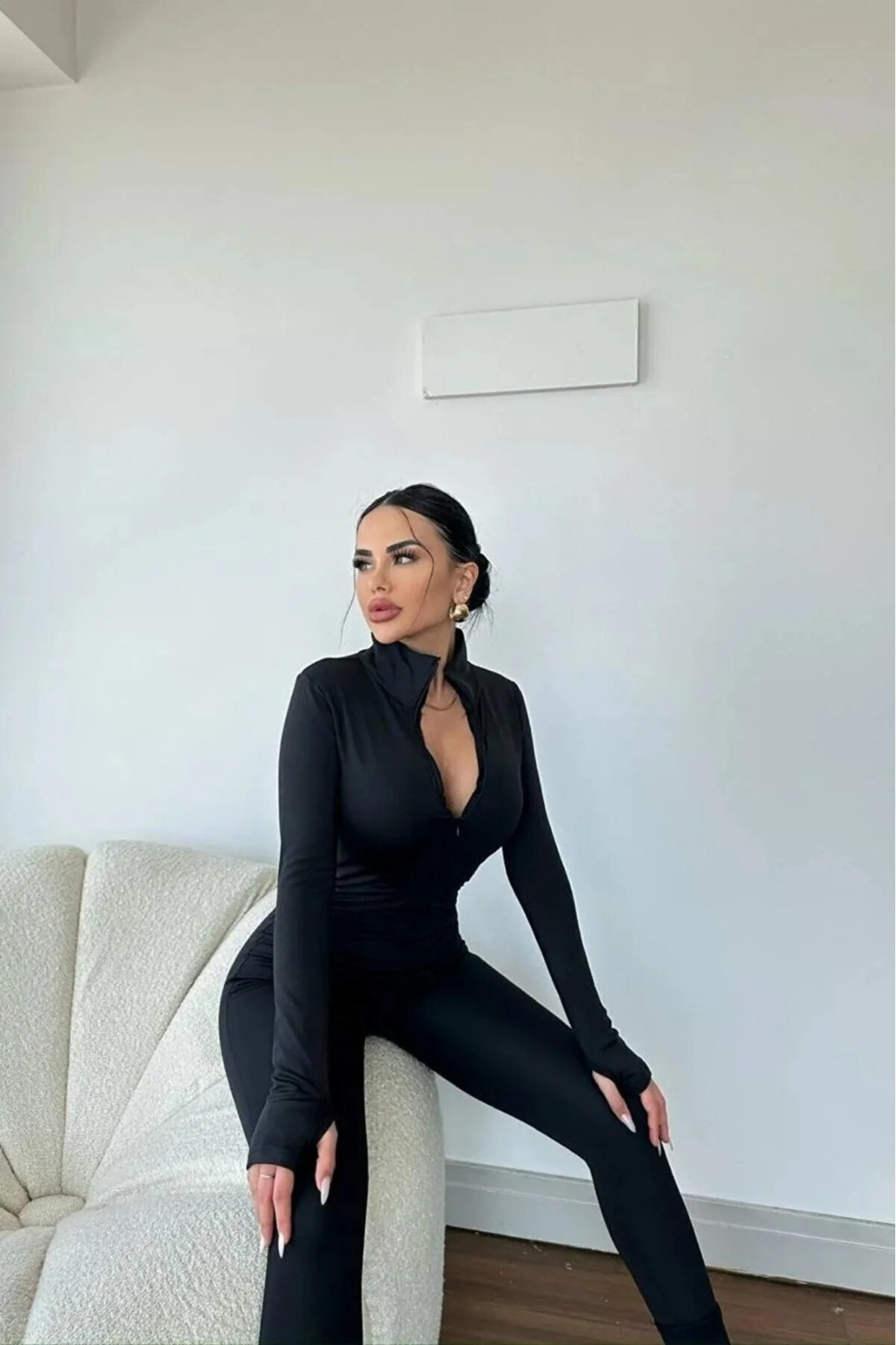 KADIN SİYAH TOPARLAYICILI ŞORT TULUM / FERMUARLI OUTDOOR TULUM KADIN SİYAH TOPARLAYICILI ŞORT TULUM / FERMUARLI OUTDOOR TULUM ZULAKISATULUM 2XL